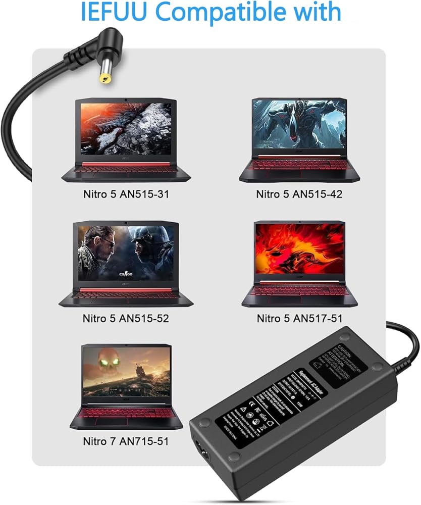 【بالنسبة لشاحن النيترو Acer】 يناسب Acer Nitro 5 7 Seires AN515-57 AN517-41 AN517-52 AN517-54 AN517-55 AN515-41 AN515-51 AN515-42 AN515-52 AN515-31 AN515-54 AN517-51. AN515-53 AN515-44 AN515-45 N18C3 N18C4 N17C1 AN715-51 AN715-52-715S AN715-51-796C ADAPTER COMPUTER (لن يعمل بشكل صحيح إذا كان جهازك يتطلب أكثر من 180W)