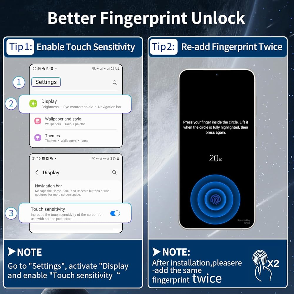 Precise DesignThe screen protector is using precise laser cutting technology to offer maximum screen coverage, offering durable protection to your Galaxy S25 ultra.High Transparency99.99% transparency preserves the original screen brightness.