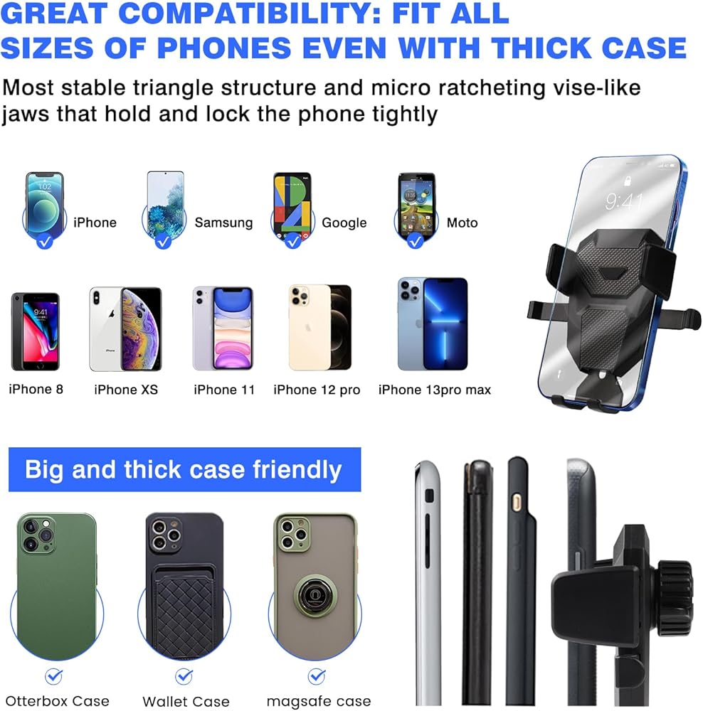 【امسك هاتفك بحزم】 يمكن استخدام حامل الهاتف الخلوي رأسياً أو أفقياً. يتبنى بنية ميكانيكية مستقرة ودرج أسفل قابل للتعديل ، والتي ستقوم بالتأكيد بالاستيلاء على هاتفك ويحملها بحزم وأمان في أي ظروف. لا يهتز أو يتحرك أو يسقط حتى في منعطف حاد أو طرق وعرة.