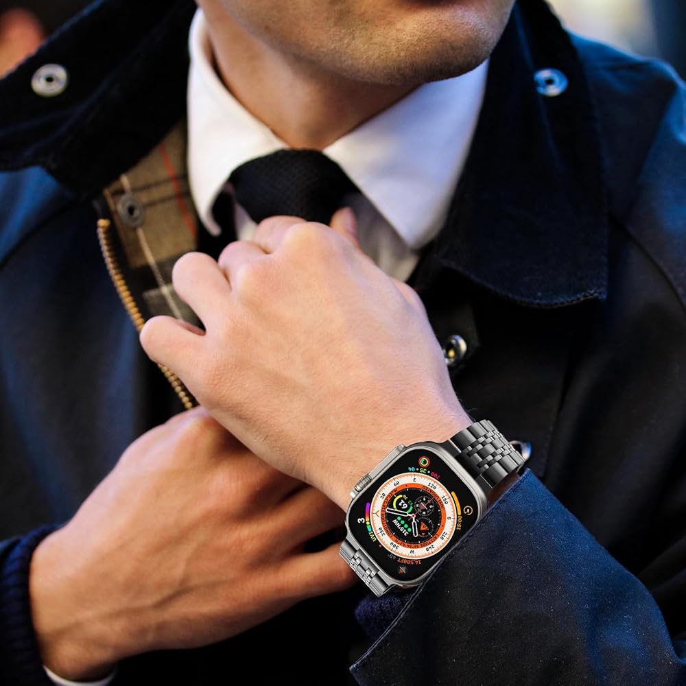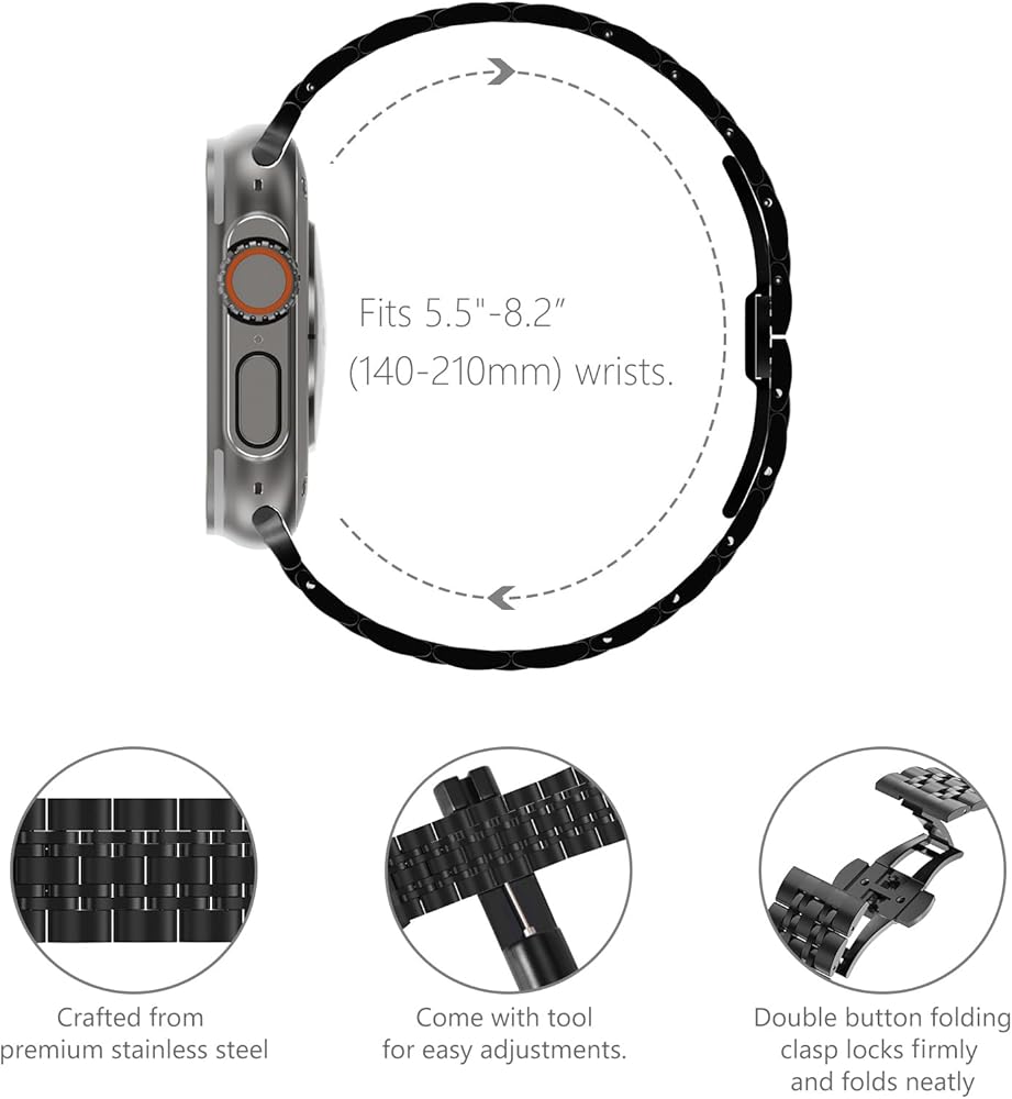 طراز ساعة متوافق: بالنسبة لـ Apple Watch Ultra/Ultra2 49mm ، سلسلة Apple Watch 10 46 مم ، سلسلة Apple Watch 45mm 7/8/9 ، سلسلة Apple Watch 44mm 4/5/6 SE ، Apple Watch 42mm Series 1/2/3 ؛ (لا تتناسب مع Apple Watch Series 10 42mm)