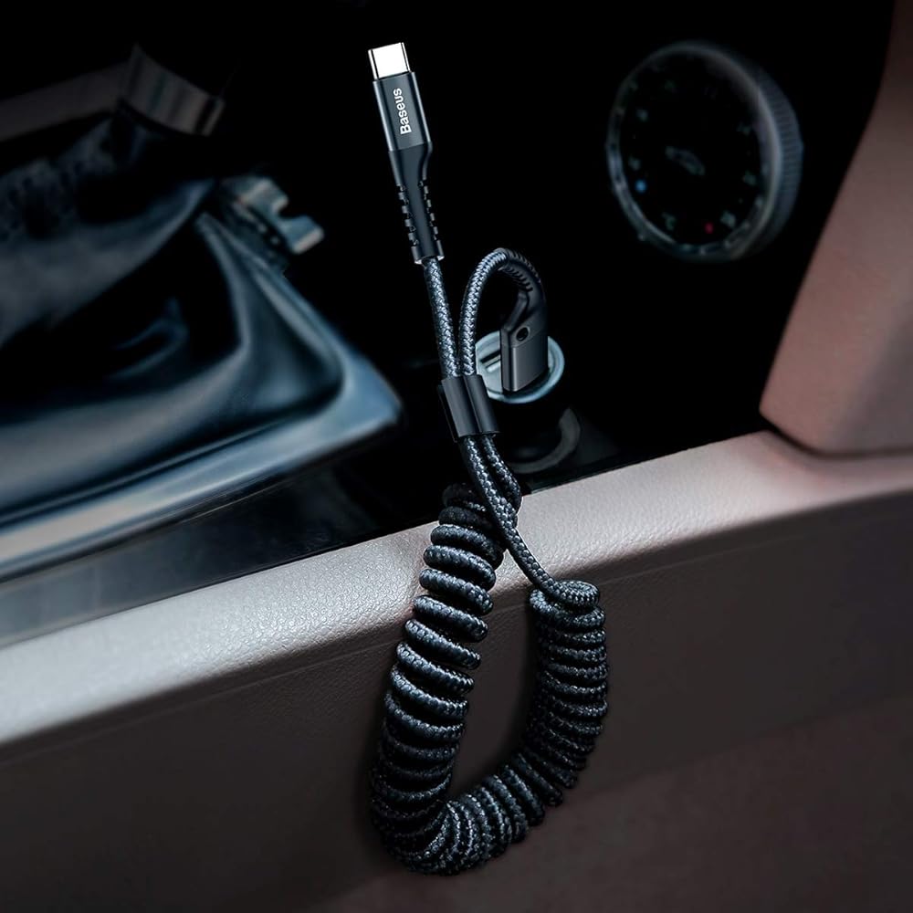 تصميم ملفوف جديد - كابل Car USB Type -C مع تصميم شكل نابض ، محمول دون توأم. يوفر الطول العقلاني لسلك الزنبرك يمكن أن يسهل الشحن في المقعد الخلفي المشترك أو المقعد الخلفي. (طول الشد: 0.8-5.9ft) تمدده طالما أردت.
