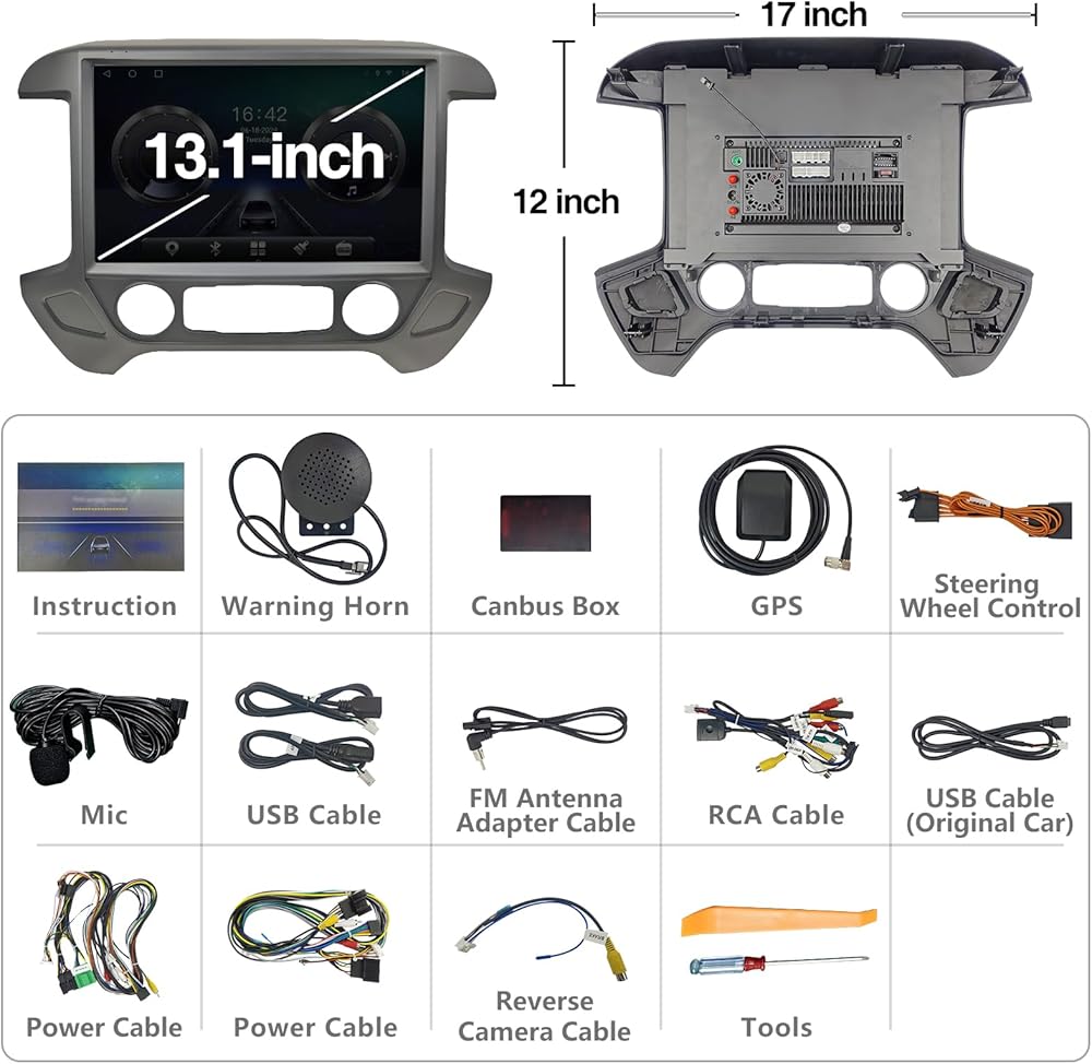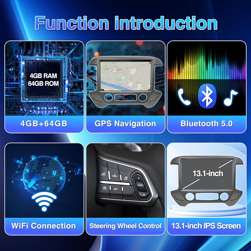 13.1 بوصة سيارات راديو ستيريو متوافق مع Chevy Silverado GMC Sierra 2014-2018 ، 4G+64GB Android 12 CAR RADING UND