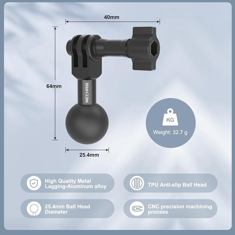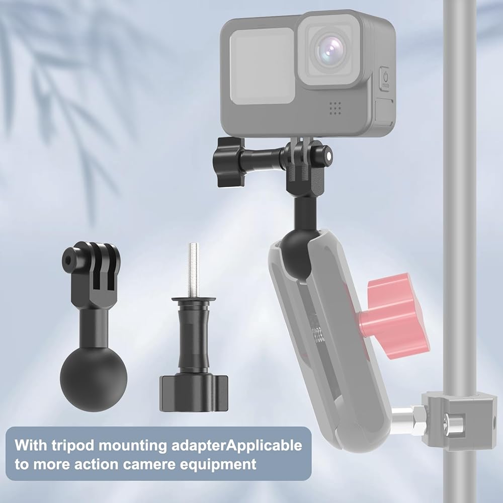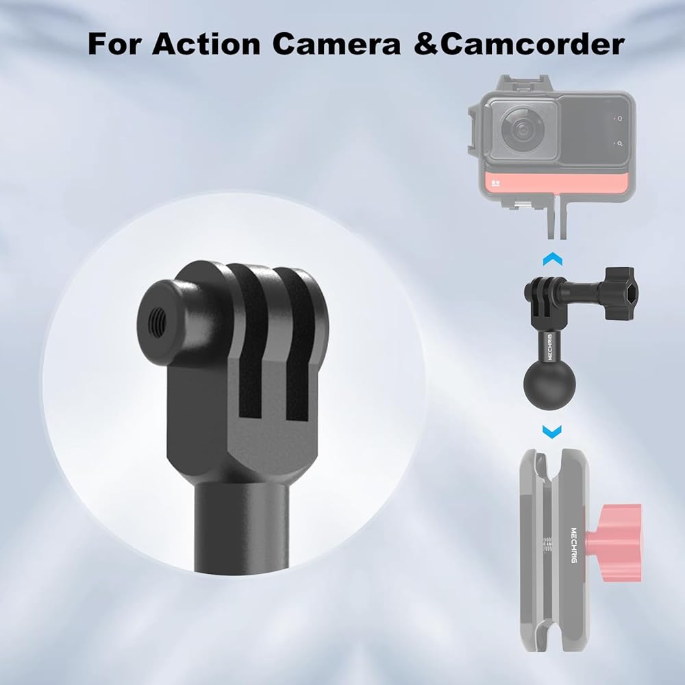 التوافق على نطاق واسع: Mechrig Camera Tripod Mount متوافق مع أنواع مختلفة من 1 '' Ball Double Meduim Long Socket Arm ، يمكن استخدامها لسلسلة الكاميرا الرياضية الكاميرا وما إلى ذلك.