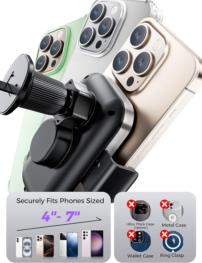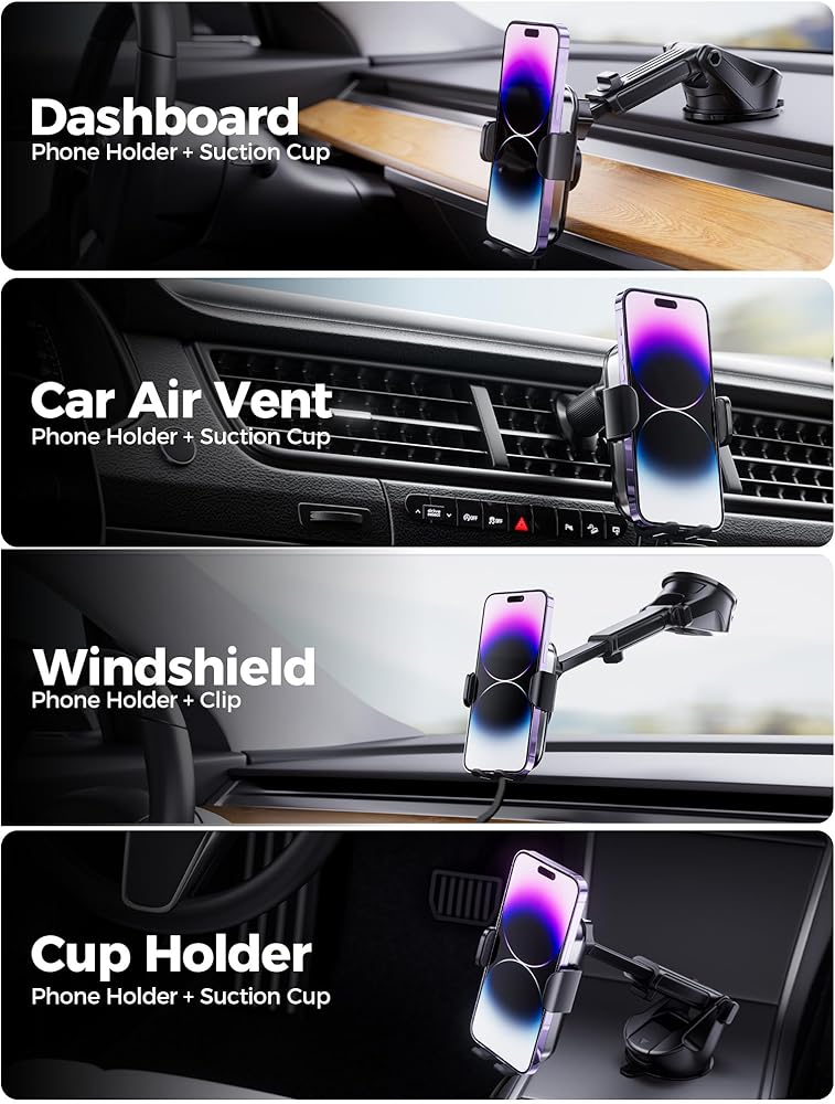 3-in-1 Mounting Versatility: Attach securely to your dashboard, windshield, or air vent with the suction cup or vent clip. The strong adhesive and durable design keep your phone steady on rough roads. Ideal for drivers of cars, SUVs, and trucks, it's the ultimate tool for safe and convenient GPS navigation and hands-free calls.