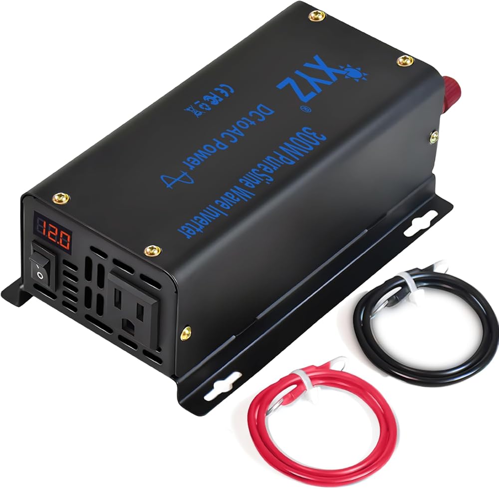 • ما تحصل عليه: عاكس الطاقة 1 × 300W ، دليل مستخدم واحد × ، كابلات بطارية 2 × (ضمان لمدة عام واحد).