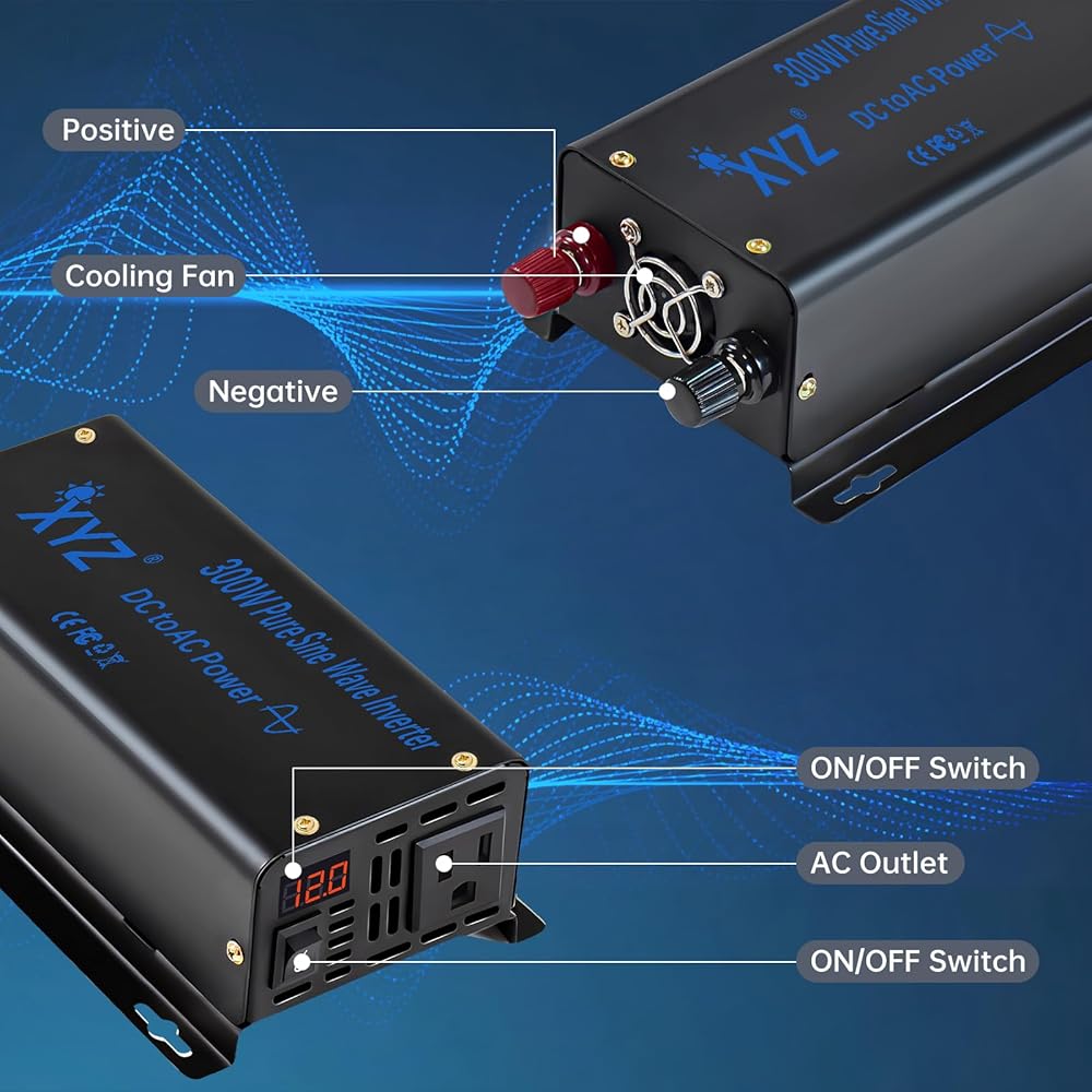 • DC-AC قوي: تحويل 36V DC إلى 120V AC. تتحد MOSFETs الممتازة وحواف النحاس الحقيقية لإنتاج ناتج AC المثالي الموجة النقي التي لديها كفاءة عالية تحويل تزيد عن 90 ٪ وفقدان تحويل أقل.
