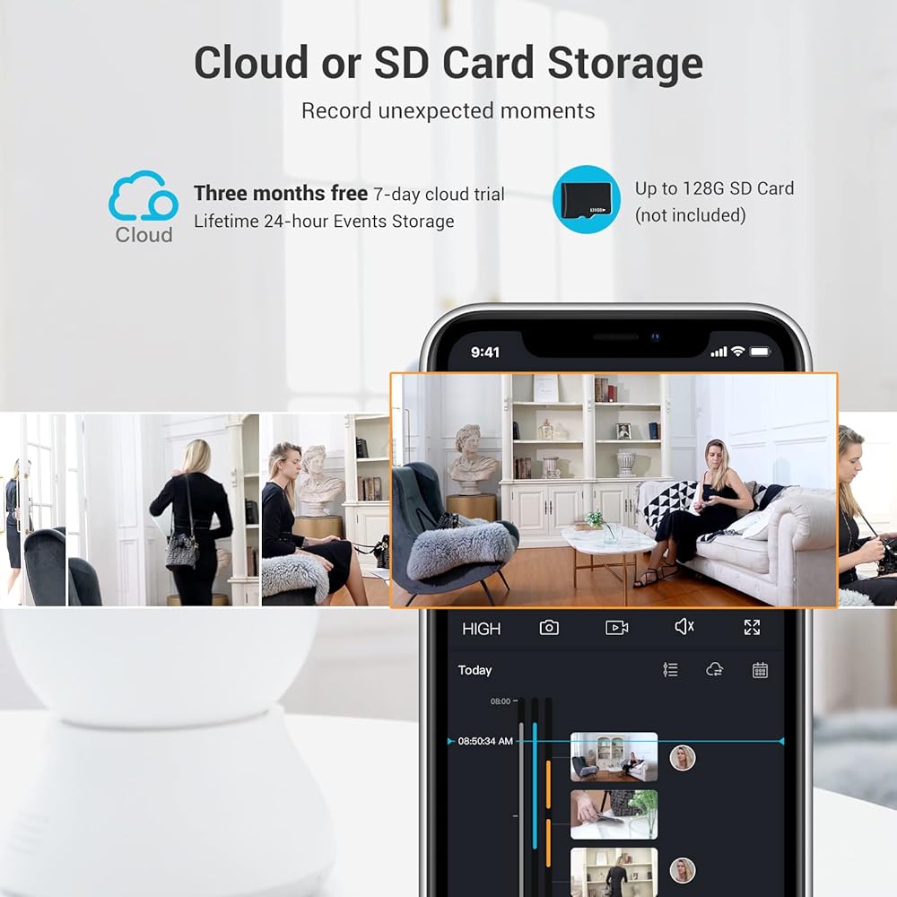 التخزين السحابي المجاني والاكتشاف الذكي المتقدم: أرسل تنبيهًا فوريًا وقم بتنشيط صفارات الإنذار manuaindoorlly عندما يكتشف الإنسان أو الصوت أو الحركة. شاهد وتنزيل ومشاركة مقاطع الفيديو الـ 24 ساعة الماضية مجانًا على السحابة. قم بإنشاء قاعدة بيانات الوجه الخاصة بك لتعزيز أمان المنزل والمعرفة على الفور عندما يظهر أفراد الأسرة أو الغرباء ، ومراجعة الأحداث بسهولة وتأمين منزلك (يتطلب اشتراكًا)