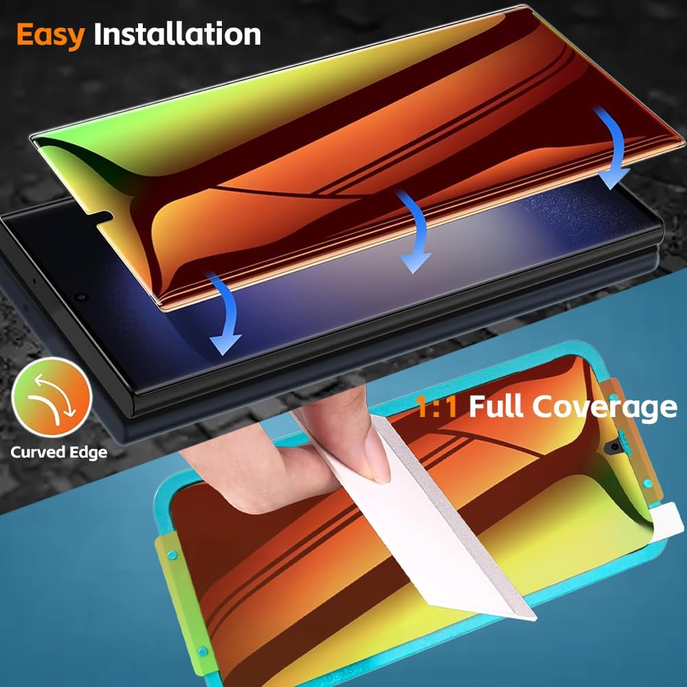 [سهلة التثبيت وصديق الحالة]: لاصقة خالية من الفقاعات تجعل من السهل تثبيت واقي شاشة Galaxy S23 Ultra ولا توجد بقايا عند إزالته. متوافق مع 99 ٪ من حالات الهاتف الخلوي في السوق.