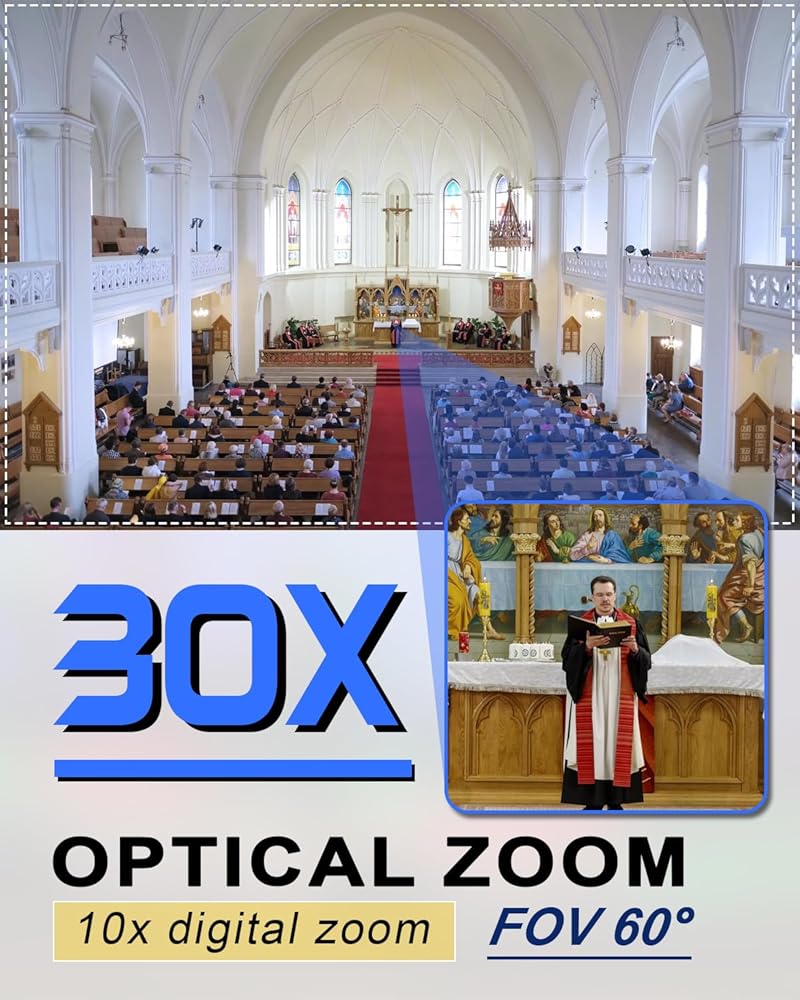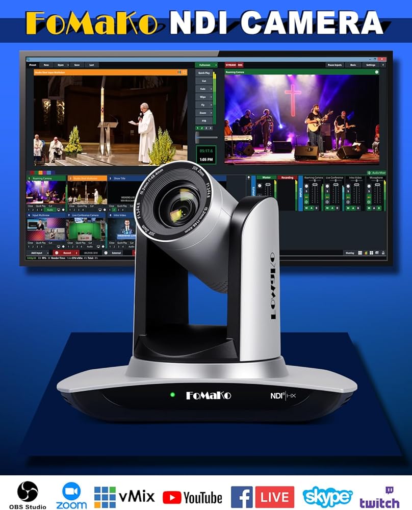 كاميرا NDI PTZ مع عدسة تكبير البصرية 30x. متوافق مع Switcher Mixer Switcher و PTZ ، متوافق مع VMIX/OBS وغيرها من برامج بث الفيديو الحية ، إنتاج الفيديو متعدد الكاميرات للبث المباشر إلى YouTube و Facebook.