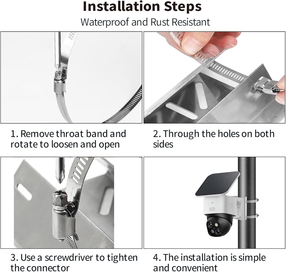 [زوايا المشاهدة المرنة] 360 درجة الدوران و 90 درجة يتيح تميل التعديلات الزاوية الدقيقة ، وضمان وضع الكاميرا الأمثل والتعرض لأشعة الشمس القصوى للنماذج التي تعمل بالطاقة الشمسية.