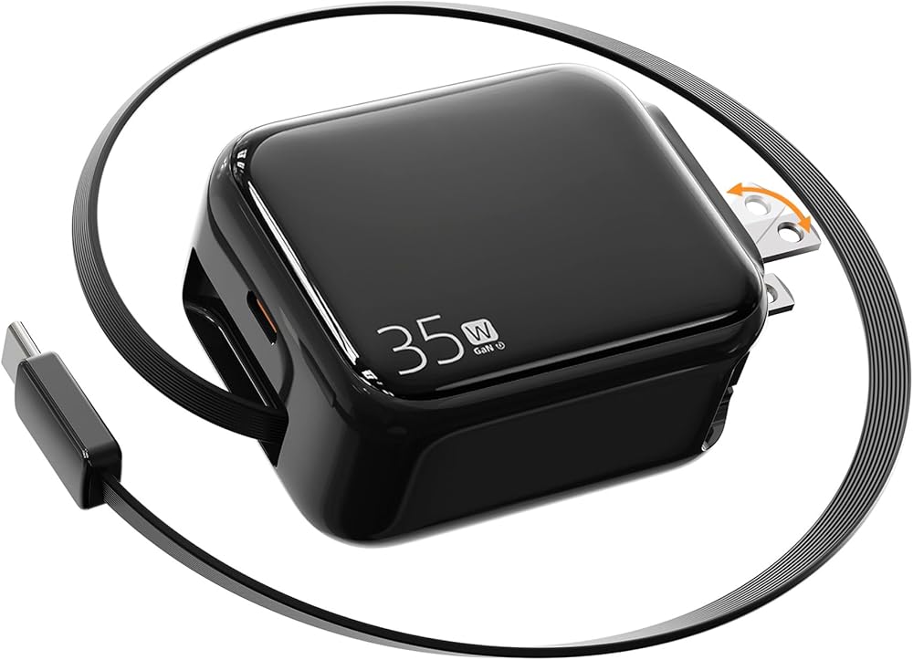 【تصميم مضغوط جاهز للسفر】- التخلص من الشحنات الضخمة والكابلات المتشابكة! يجمع شاحن الجدار USB-C القابل للسحب 35W بين سدادة قابلة للطي وكابل قابل للسحب 2.95 قدم مدمج ، مما يجعله رفيق السفر النهائي. قم بطي القابس ، وتراجع الكبل ، وانزلقه في حقيبتك أو جيبك للحصول على قابلية النقل الخالية من المتاعب. أخف وزنا وأكثر إحكاما من أجهزة الشحن التقليدية ، وهي مثالية للسفر أو غرف النوم أو المطابخ أو المكاتب. أينما ذهبت ، استمتع بشحن موثوق به بسهولة