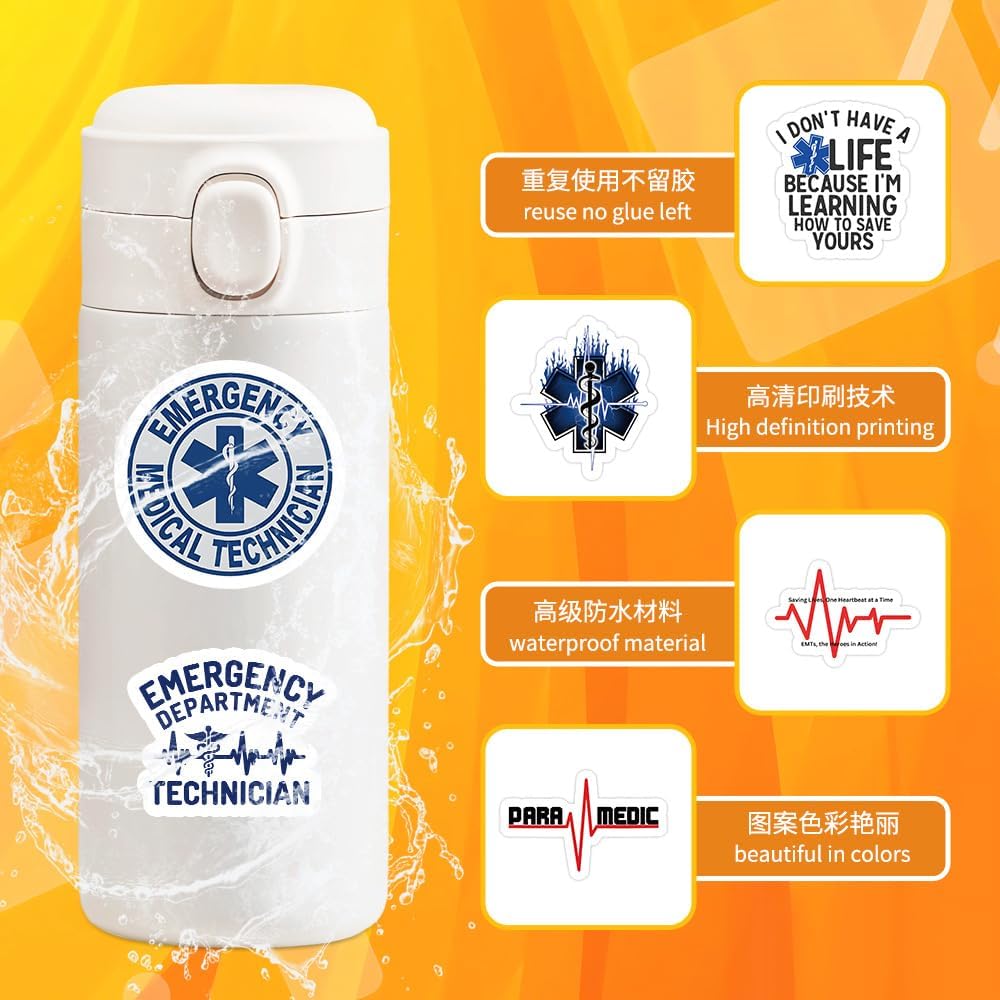 106 DIFFERENT DESIGNS This sticker set offers 106 fun and professional designs for EMTs and paramedics. Featuring funny quotes and medical imagery, they're perfect for personalizing water bottles, laptops, and more.