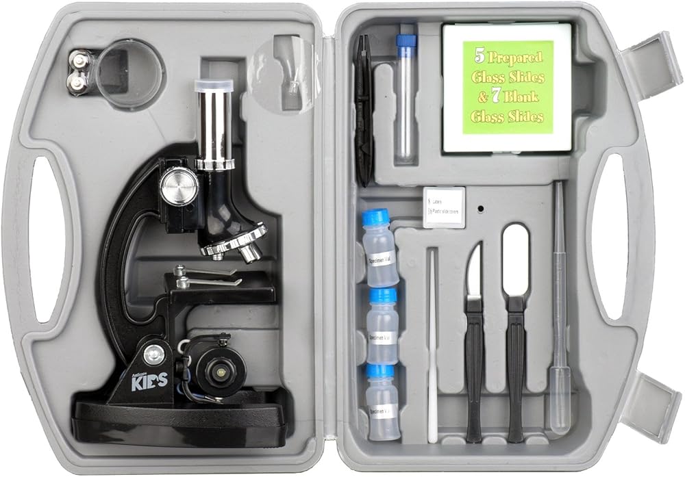 - تشتمل مجموعة ملحقات الميروسكوب المكونة من 48 قطعة على حقيبة تخزين ABS وبطاريتين AA