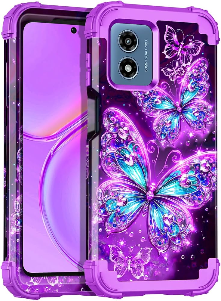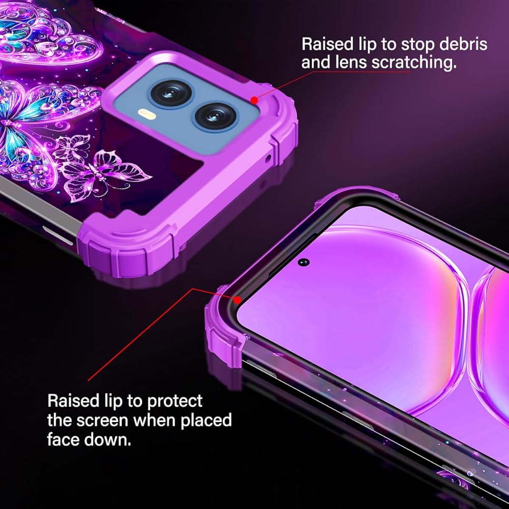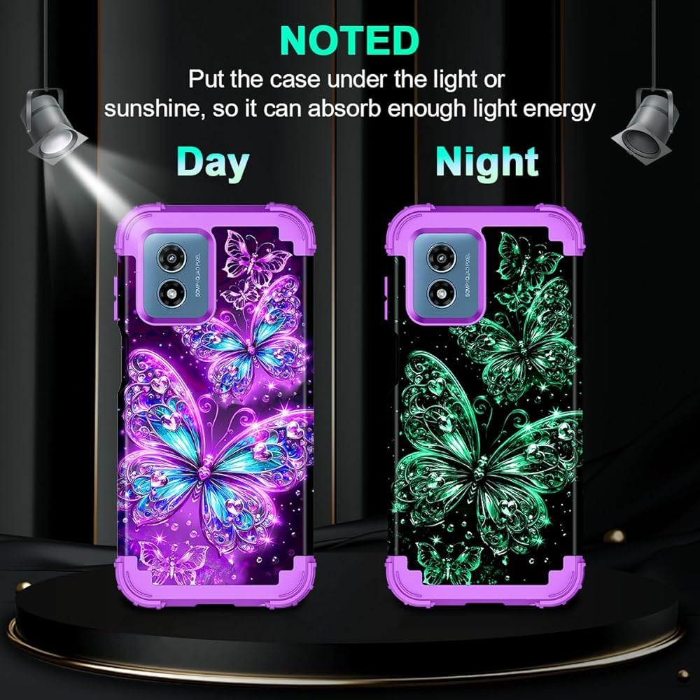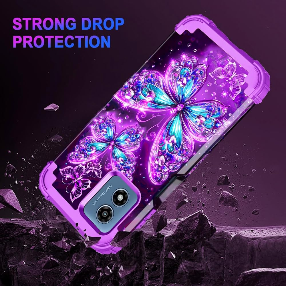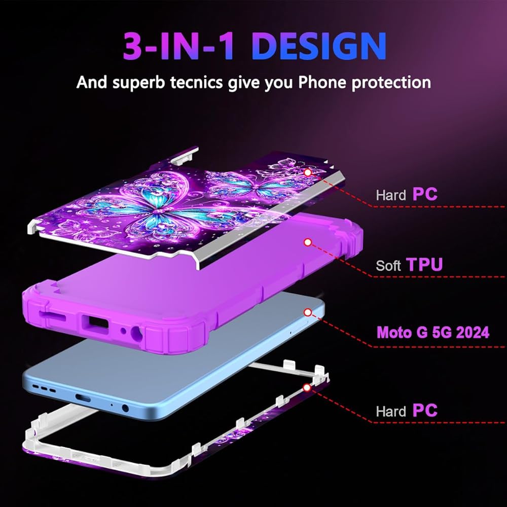 Casetego متوافق مع حالة Moto G 5G 2024 ، توهج في الطبقة المظلمة الثلاثة للخدمة الثقيلة المكوّنة الصدمات الكاملة حماية قاسية وعاء لليئة TPU ، كلها أرجوانية