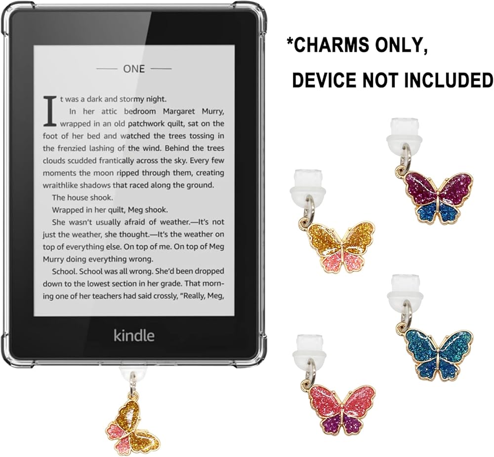 Dust Plug Charm Micro USB for Kindle: Micro USB Port Cover Phone Charging Protector Charger Accessories Cap Butterfly Set for Kindle 4pcs