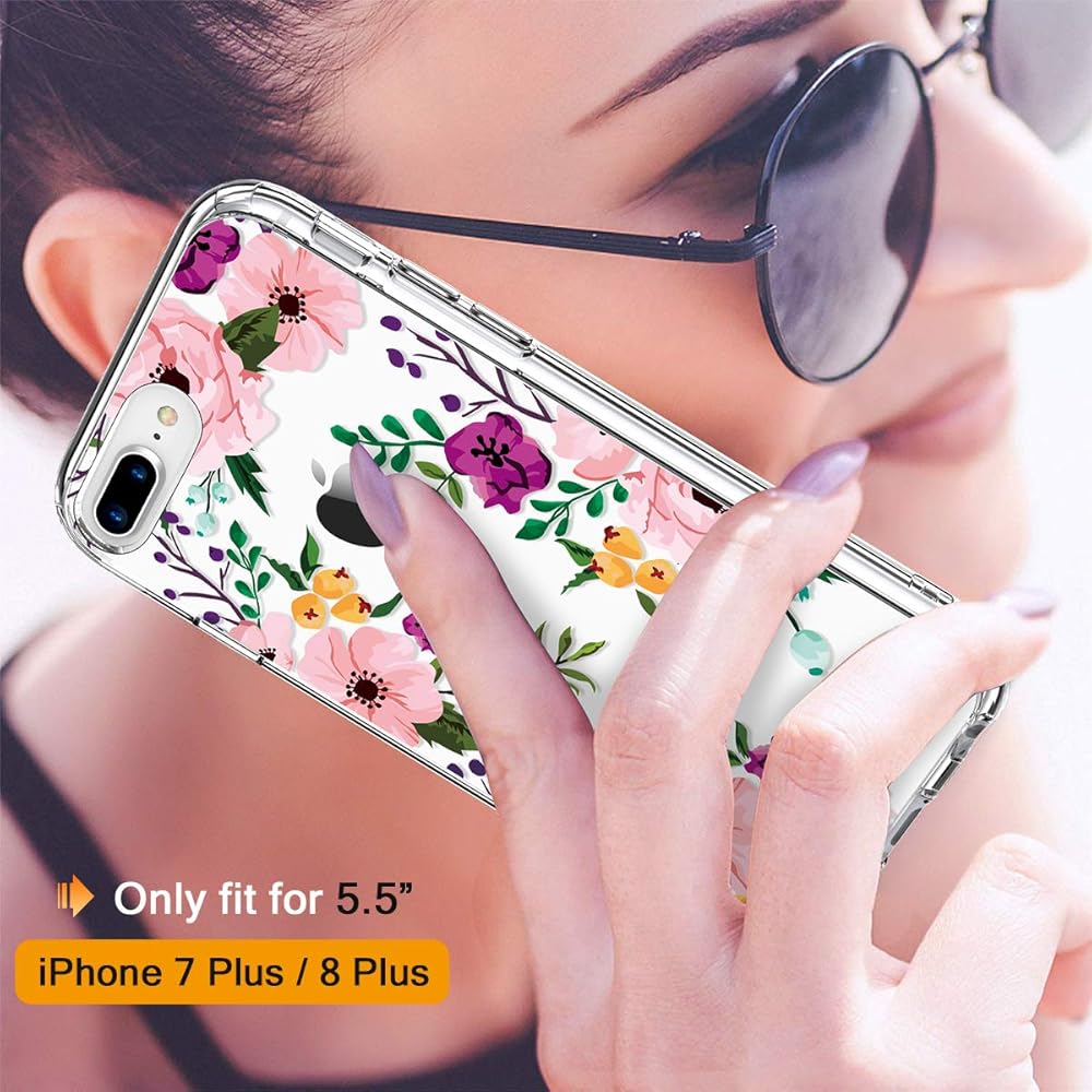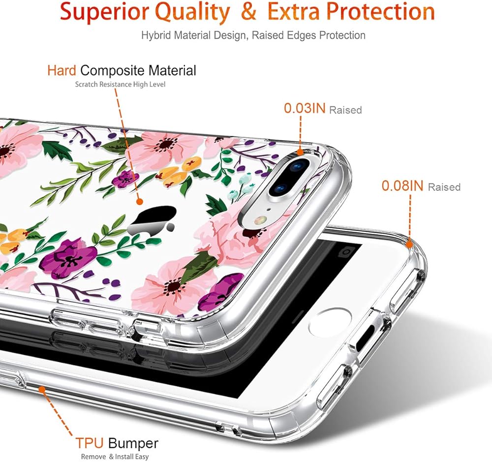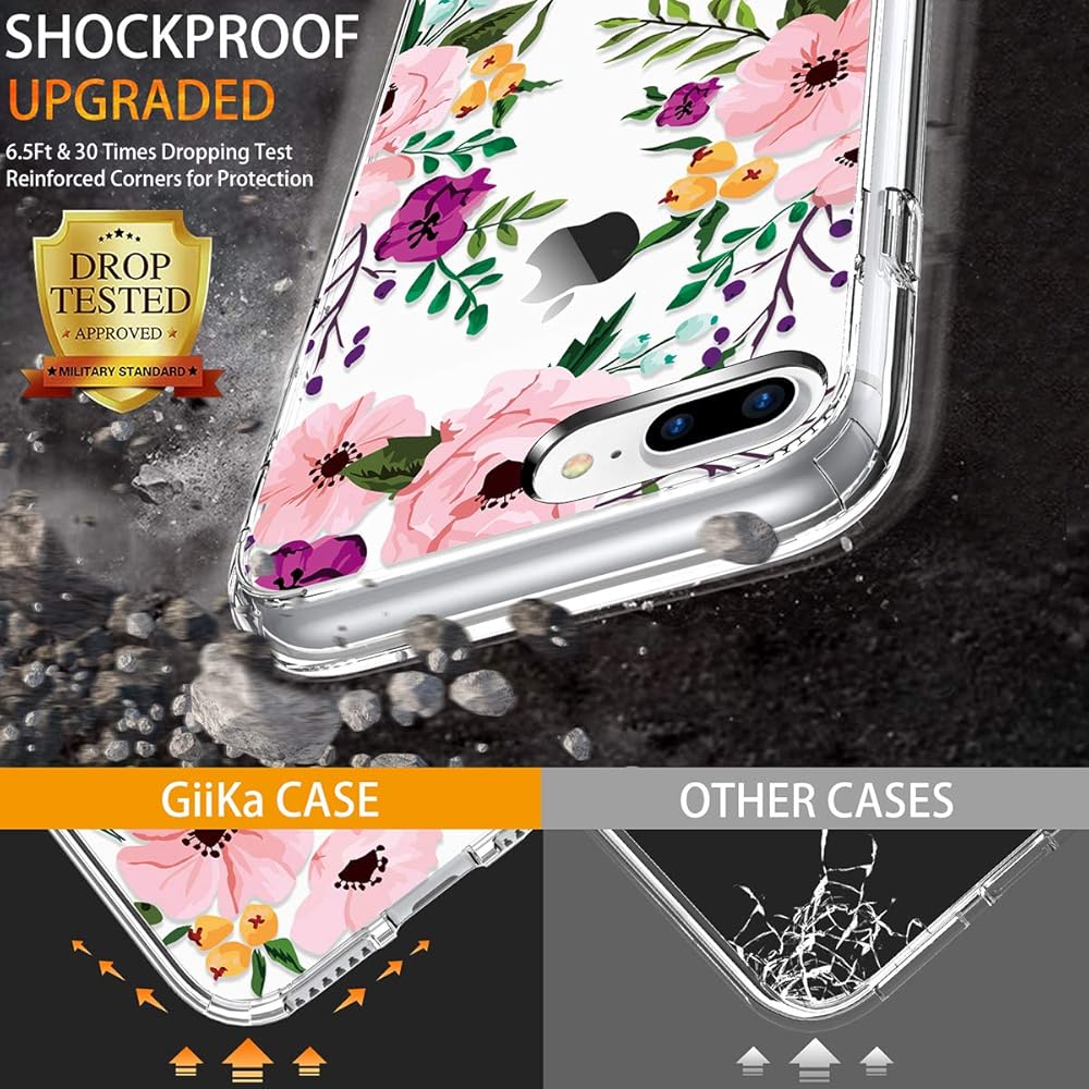 Giika for iPhone 8 Plus Case ، و iPhone 7 Plus Case مع حامي الشاشة ، واضحة في حالة وقائية شديدة التحمل ، فتيات الأزهار الصعبة مع TPU Cover Cover for iPhone 8 Plus ، Flowers Small