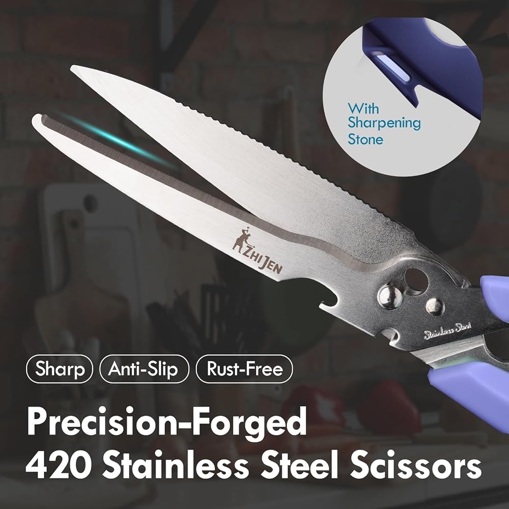 [مقصات المطبخ متعددة الاستخدامات لجميع المهام]: مثالي لقطع الأعشاب ، وتقليص اللحوم ، وتقطيع البيتزا ، والطعام المسبق. تتعامل هذه المقصات الشاقة في كل شيء من الخضر الرقيقة إلى عظام الدجاج الصعبة ، مما يجعلها أداة طهي أساسية لكل منزل.