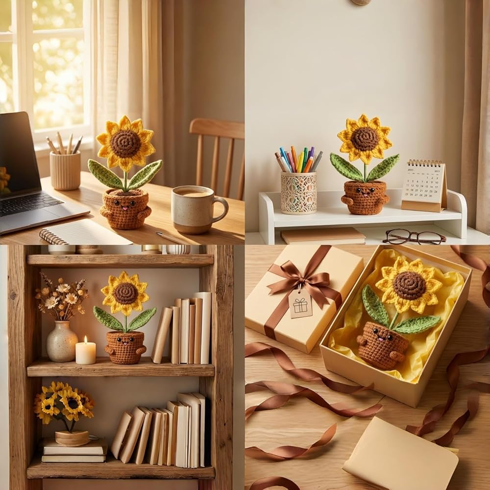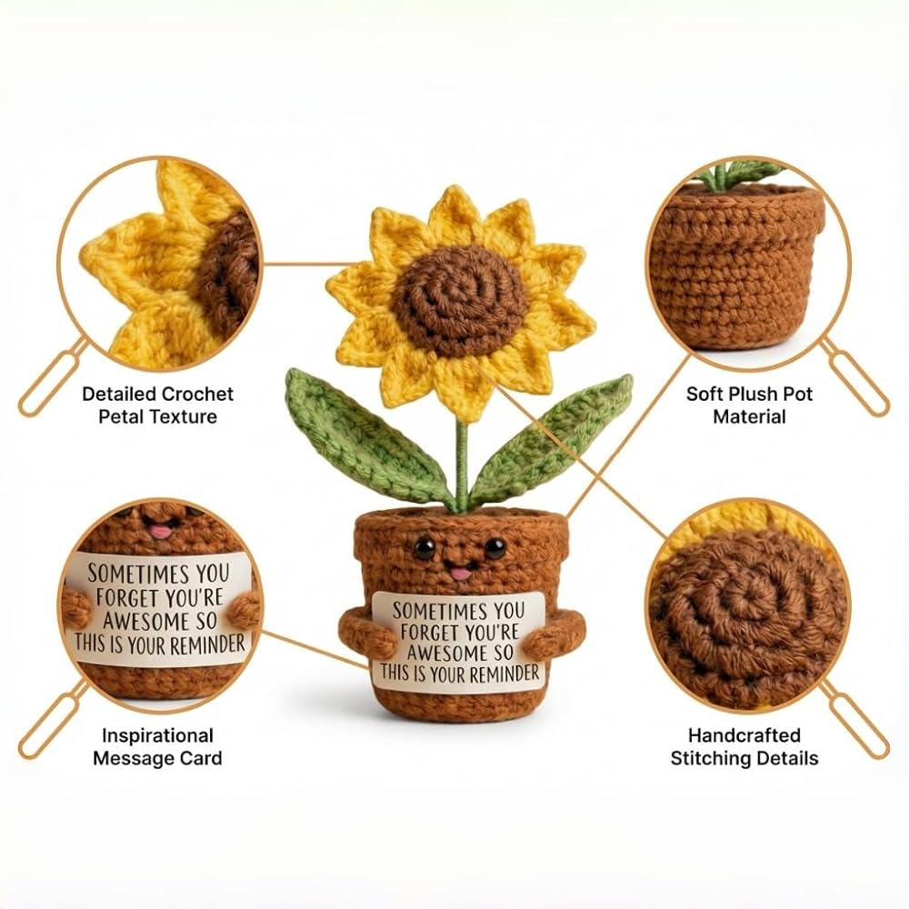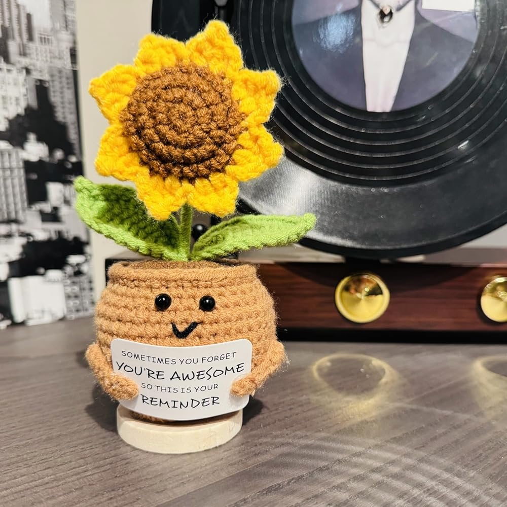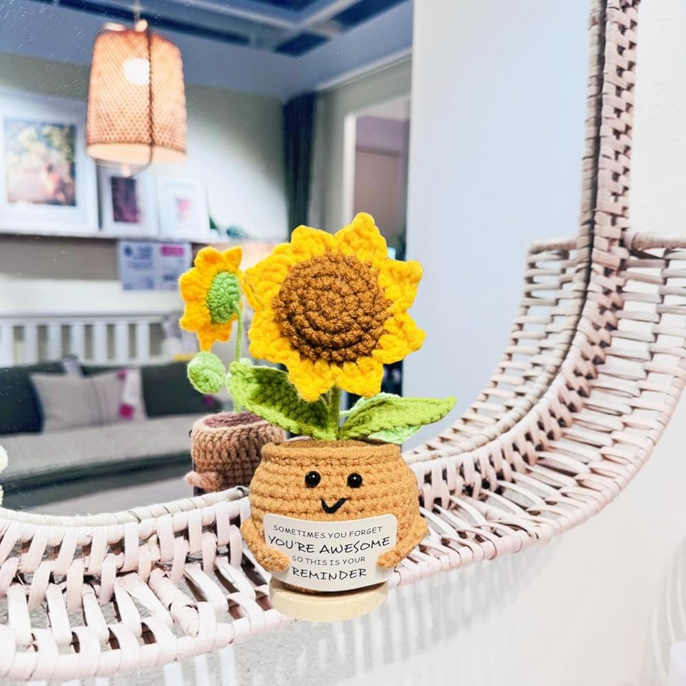 ابتسامات كبيرة من عباد الشمس: هذه الهدايا الإيجابية للكروشيه عباد الشمس ستحتضن أحبائك في عناق دافئ. هذا الشكر سوف يجلب بالتأكيد ابتسامة كبيرة على وجوههم. تبتسم الابتسامات والهتاف لها/يومه مع هذا الشكر للنساء! أخصائي اجتماعي مثالي ، موظف ، معلم ، أفضل صديق للهدايا التي ترمز إلى الإيجابية والصحة والسعادة. هذه الهدايا الملهمة عباد الشمس ترسلها/له أشعة الشمس والعناق والحب