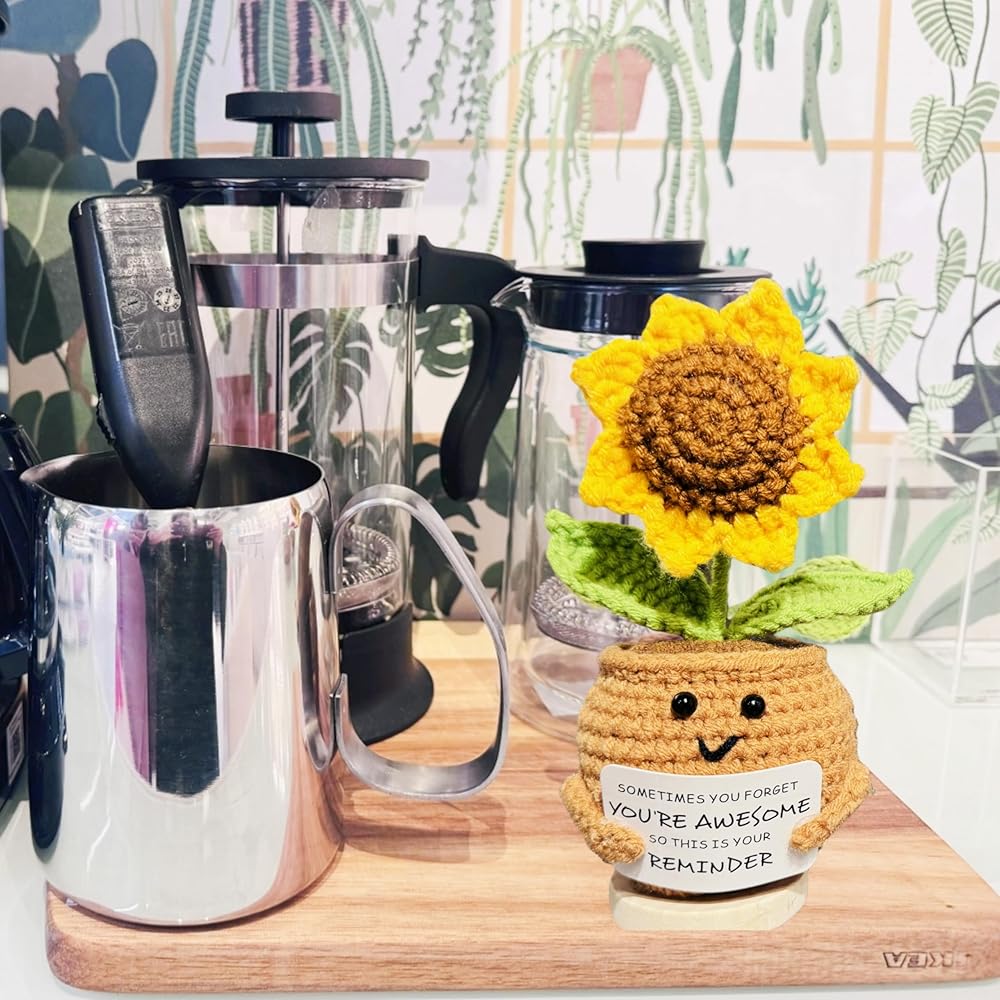 الأشياء الجيدة التي تشفيها: هذا نبات الكروشيه الصوف الحميم ، المقترن ببطاقة عاطفية راقية ، هو قطعة ديكور متعددة الاستخدامات لكل من المنزل والسيارة. مثالي للمكتب أو لوحة القيادة ، إنها هدايا شكر حقًا لك أن أي امرأة ، زميلة في العمل ، أفضل صديق سوف يعشق ويعشق.