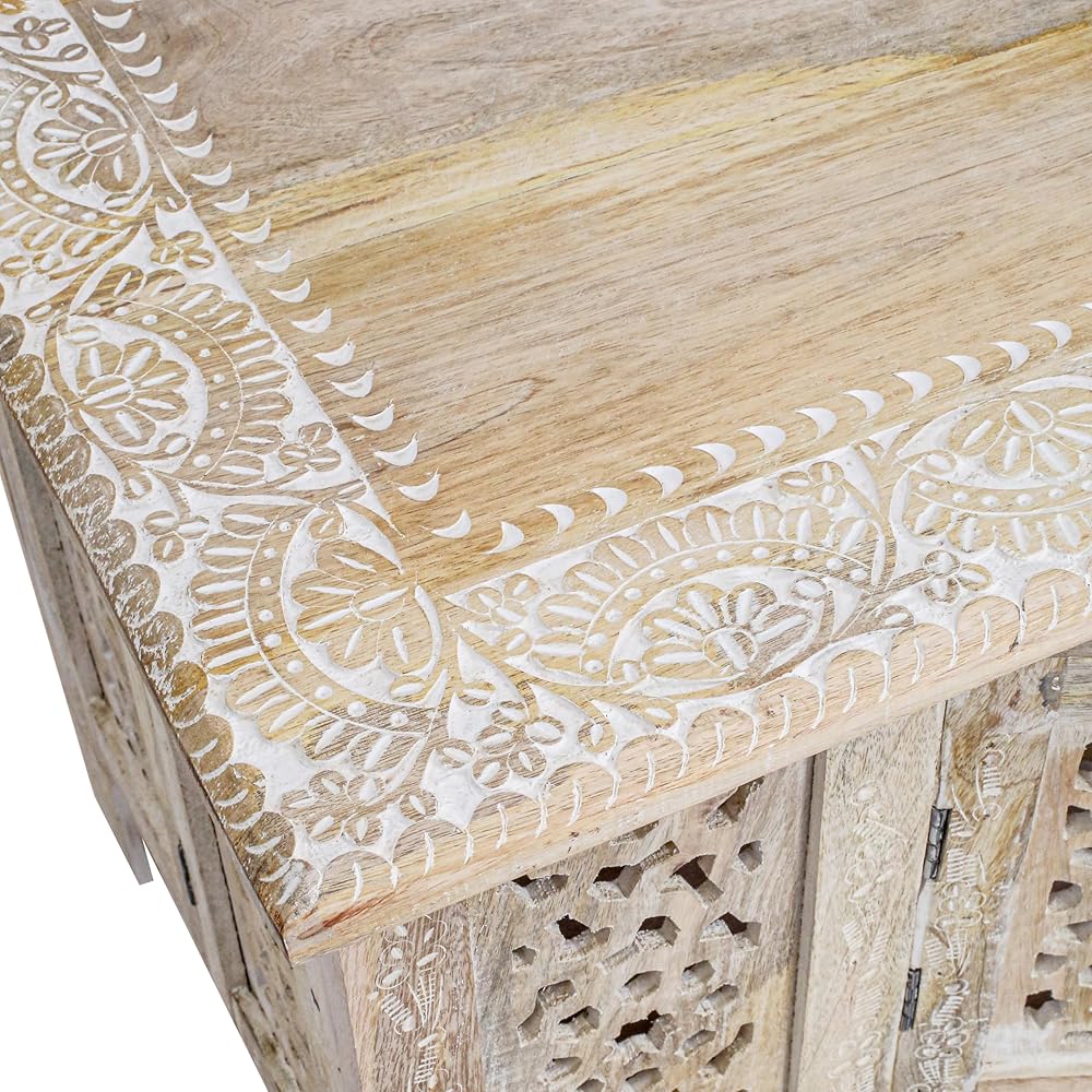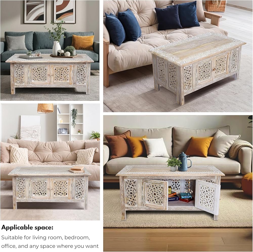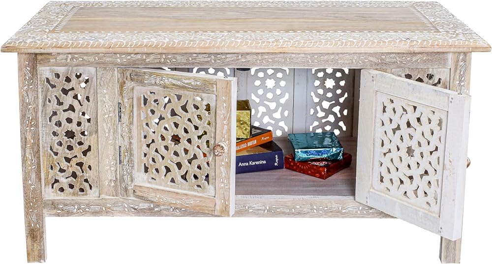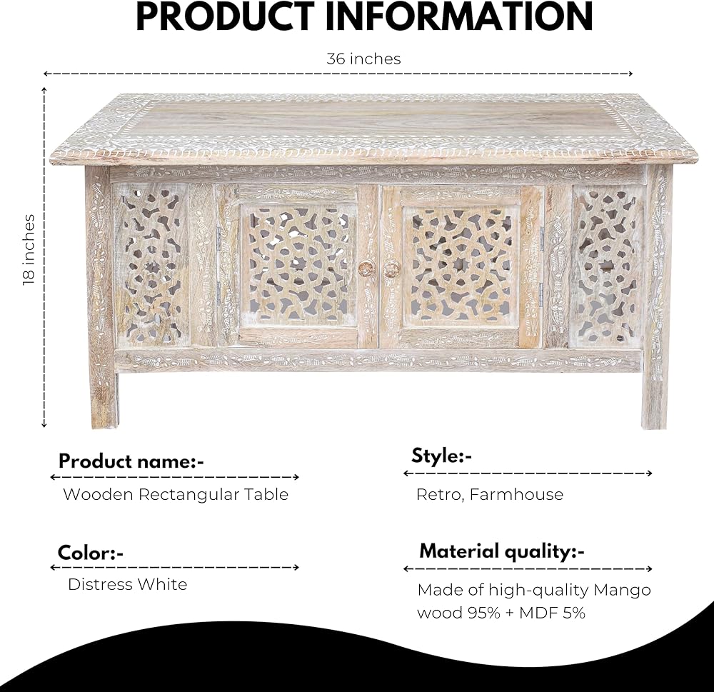 الأناقة المنحوتة يدويًا-مصنوعة يدويًا من خشب المانجو الصلب ، تتميز طاولة القهوة المستطيلة بالتفاصيل المعقدة ، مما يضيف لمسة فريدة وفنية إلى أي مساحة معيشة.