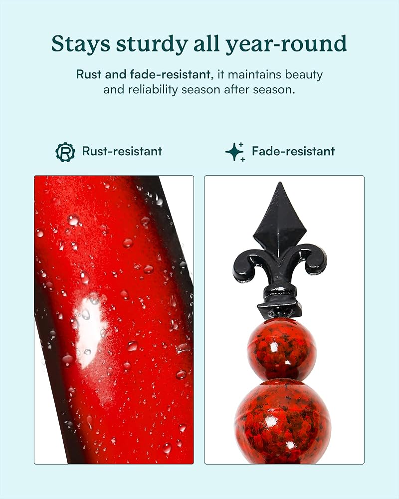 ديكور معدني في الهواء الطلق المقاوم: مصنوع من المعدن المقاوم مع تشطيبات الطلاء الواقي. الأشعة فوق البنفسجية ، الصدأ ، وتتلاشى المقاومة. يمكن تنظيف الدوار الزخرفي طوال الموسم بسهولة للحفاظ على تألقه العاكس ومظهره الريفي. استخدام طويل الأمد