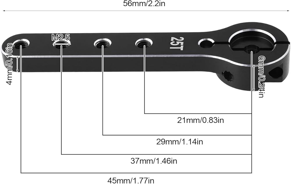-Dimensions: With an overall length of 56mm and multiple hole centers at 21mm, 29mm, 37mm, and 45mm, this servo arm allows for precise adjustments.
