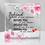 المواد: التخرج من الدرجة الرئيسية ووزن الورق المصنوع من الأكريليك الواضحة والحجم حوالي 4'x4 '' ، عرضه على رف الطاولة لتهاني التخرج الرئيسي وكزينة الغرفة