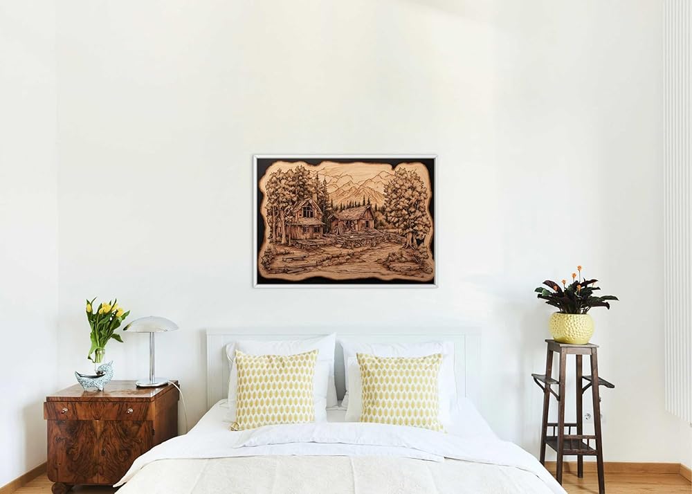 The wood burning look creates peaceful forest cabin scenes, woman pattern, portraits and various landscapes. In this way, it adds a touch of nature to your projects.