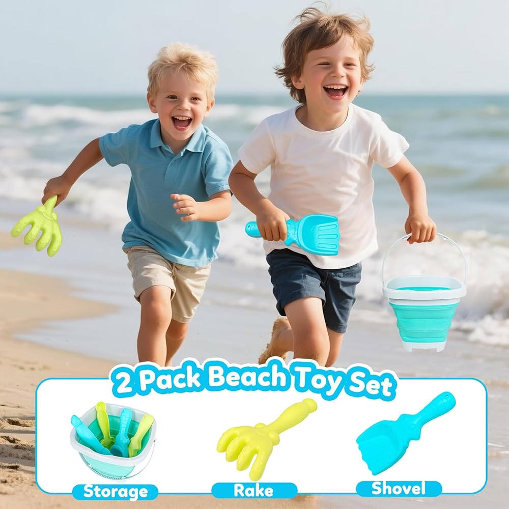 Make beach days unforgettable with this delightful kids' beach toy set in vibrant turquoise and orange! The innovative collapsible bucket is a game-changer - it saves precious space in your beach bag when not in use, yet springs to life when it's time for seaside fun. Perfect for children ages 4-8, this set includes a sturdy sand rake and shovel that are just the right size for little hands to grip comfortably. The durable construction stands up to countless hours of digging, building, and creating sandy masterpieces. Whether your little ones are constructing elaborate sandcastles, collecting seashells, or simply enjoying sensory play at the beach, this versatile set provides all the essential tools for endless summer entertainment. The bright, cheerful colors make these toys easy to spot on the sand, while the lightweight design ensures kids can carry their own beach gear with confidence. Transform ordinary beach visits into extraordinary adventures with this must-have beach toy collection!