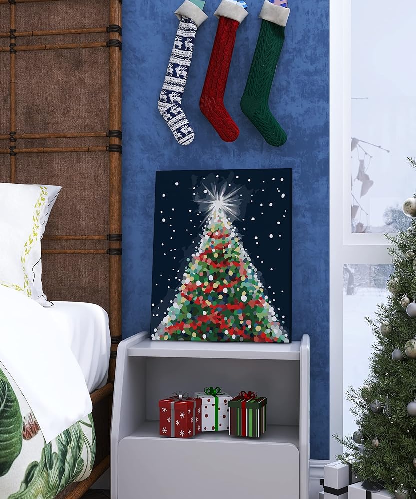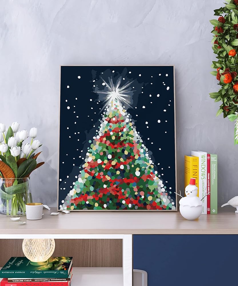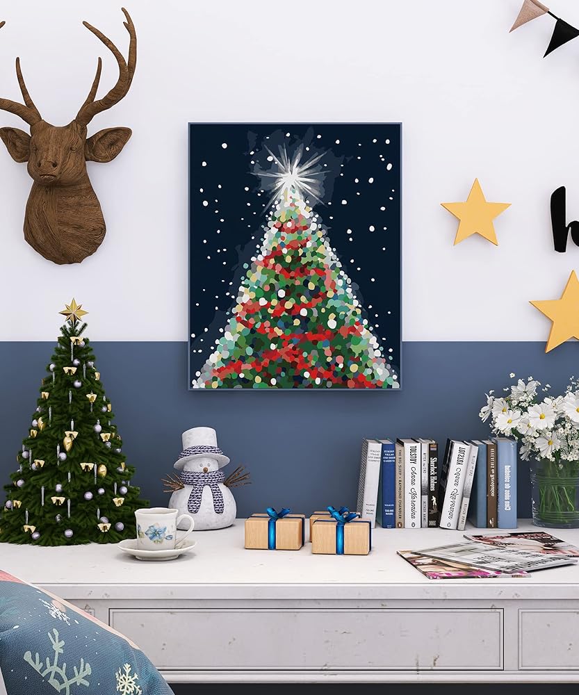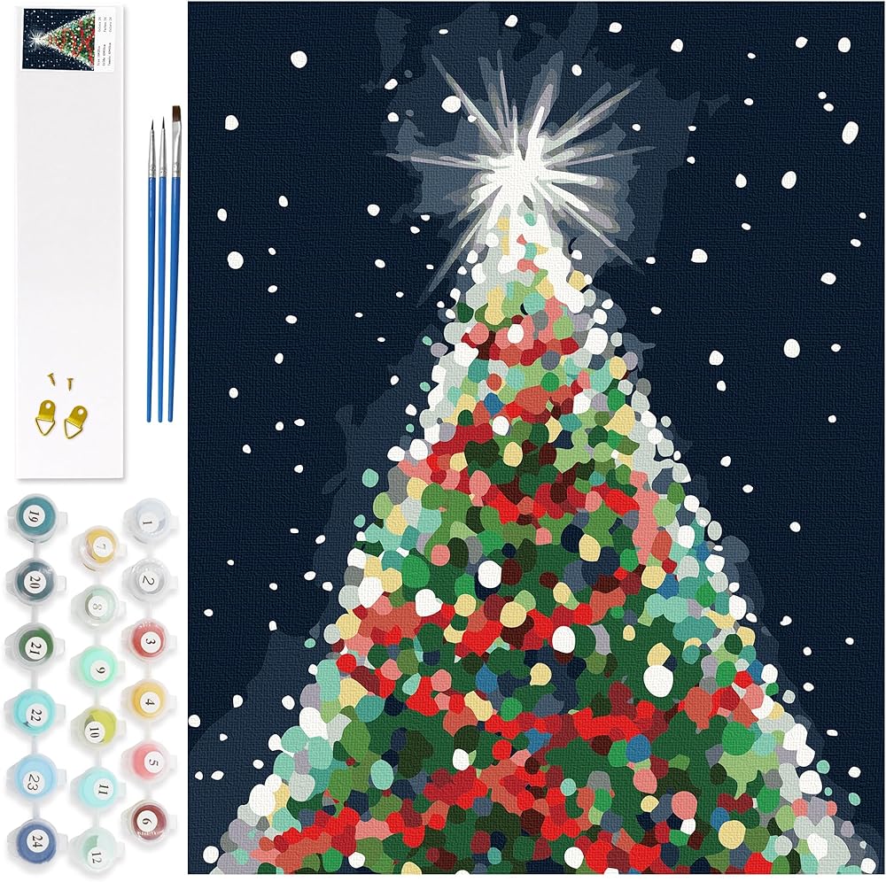 طلاء عيد الميلاد من بتراليا بالأرقام للبالغين، مجموعة طلاء يدوي ملون بالأرقام على قماش ملفوف لشجرة عيد الميلاد، عمل فني من الأكريليك للعطلات للمبتدئين بدون إطار، 16 × 20 بوصة