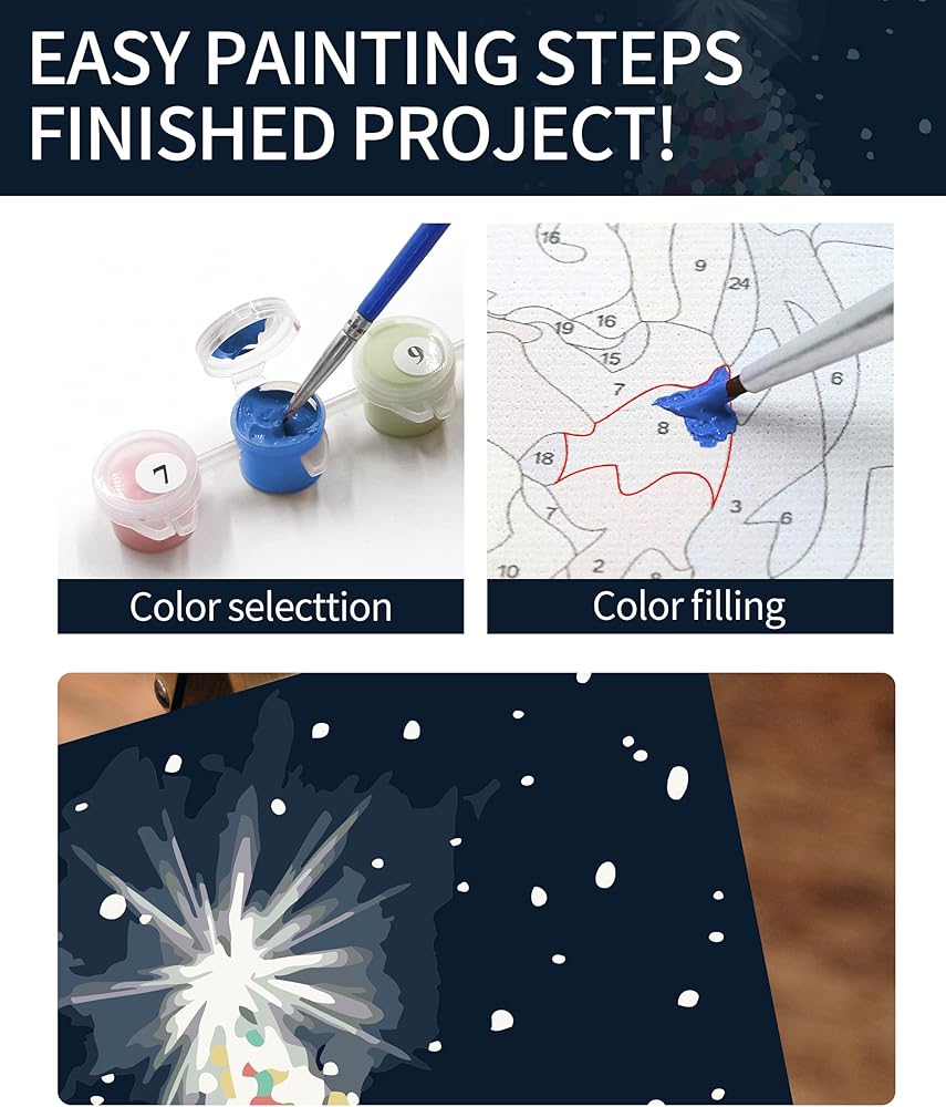 • من السهل متابعة وتجعد مجانًا- تم تصميم مجموعة الطلاء الخاصة بنا من أجل الأطفال لتكون سهلة الاستخدام ، مما يجعل من السهل على المبتدئين البدء. إنها طريقة رائعة لتعريف شخص ما بعالم الفن ورعاية قدراته الفنية. ننسى متاعب التعامل مع التجاعيد مع قماشنا المدلفن.