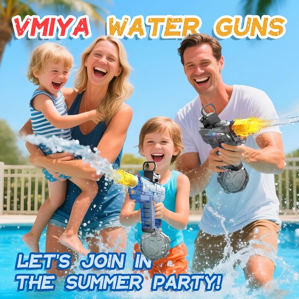 [هدايا وألعاب صيفية مثالية] Vmiya Electric Water Gun مثالية لقضاء الوقت مع العائلة والأصدقاء في الفناء أو البلياردو أو الشاطئ أو في حفلة. اختيار هدايا رائع للأطفال أو البالغين لأعياد الميلاد ، عيد الفصح ، عطلة صيفية ، عيد الميلاد