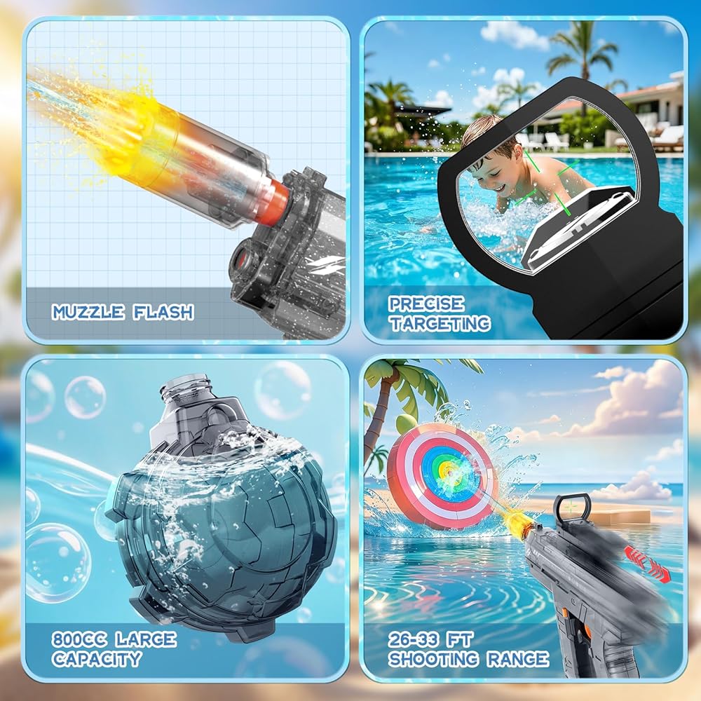 [800cc سعة كبيرة ومدى طويل المدى] مجهزة بخزان مياه 800 سم مكعب قابل للإزالة بسهولة ويقلل من الحاجة إلى عبوات متكررة ، مما يتيح لك حافة في معارك المياه ، والاستمتاع بماء ماء بدون توقف! مع مجموعة تصل إلى 26-33 قدمًا ، يمكن أن تصل مسدس الماء إلى الأهداف من مسافة بعيدة ، مما يجعل القنص نسيمًا