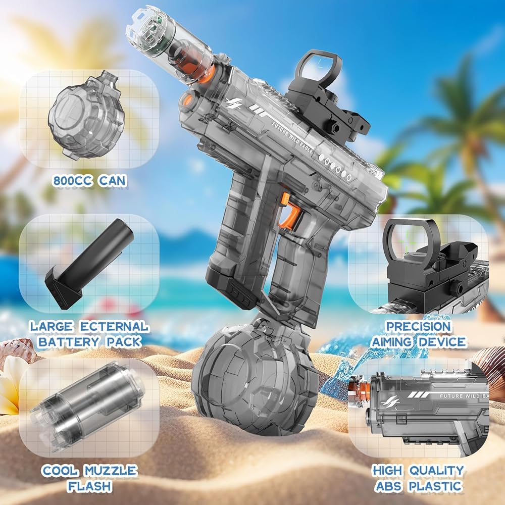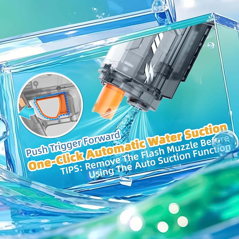 [تضيء! بندقية الماء مع فلاش كمامة] يتميز بندقية المياه الكهربائية هذا بتصميم فريد من نوعه يجعل كل تألق. يوفر لك إثارة اللعب الغامرة من خلال مزيج من الأضواء والمؤثرات الصوتية ، وتحويل معركة المياه الخاصة بك إلى عرض الضوء البارد (ملاحظة: قم بإزالة كمامة فلاش قبل استخدام دالة الشفط التلقائي)