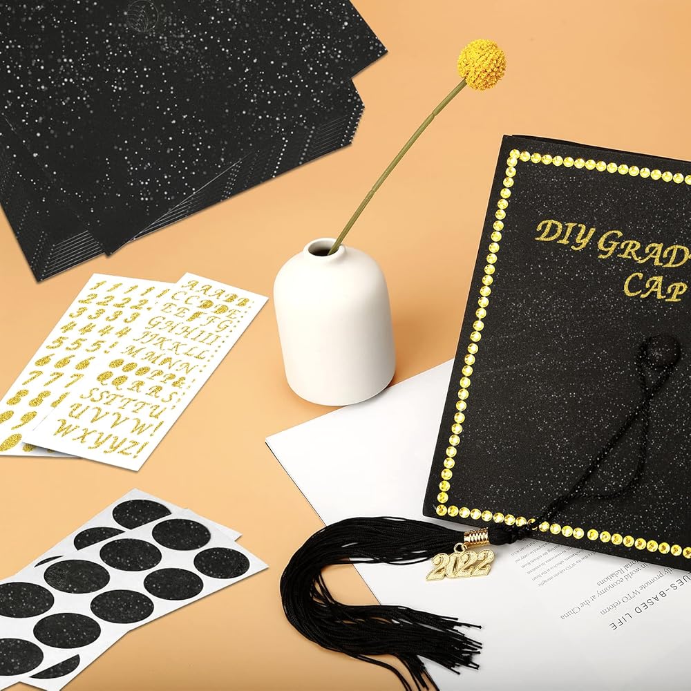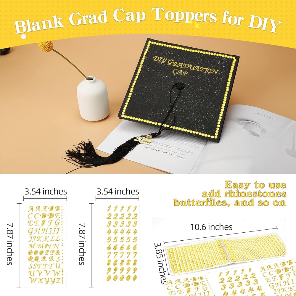 10 Pieces Graduation Cap Decoration Graduation Cap Topper Blank Graduation Cap Decoration Glitter Graduation Cap Topper Glitter Alphabet Letter Stickers and Gemstone Board Stickers with Double Sided Glue Point for Graduation Cap Decor