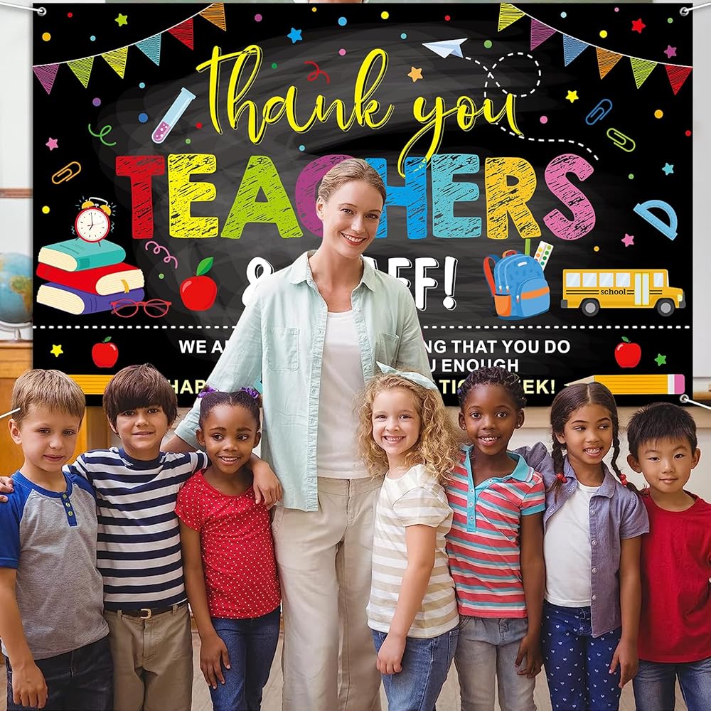 This teacher and staff appreciation banner is the perfect way to express gratitude to teachers, staff, and educators. Whether for a school event, classroom celebration, or teacher retirement party, this banner creates a warm and welcoming atmosphere. Get yours today and make Teacher Appreciation Week even more special!