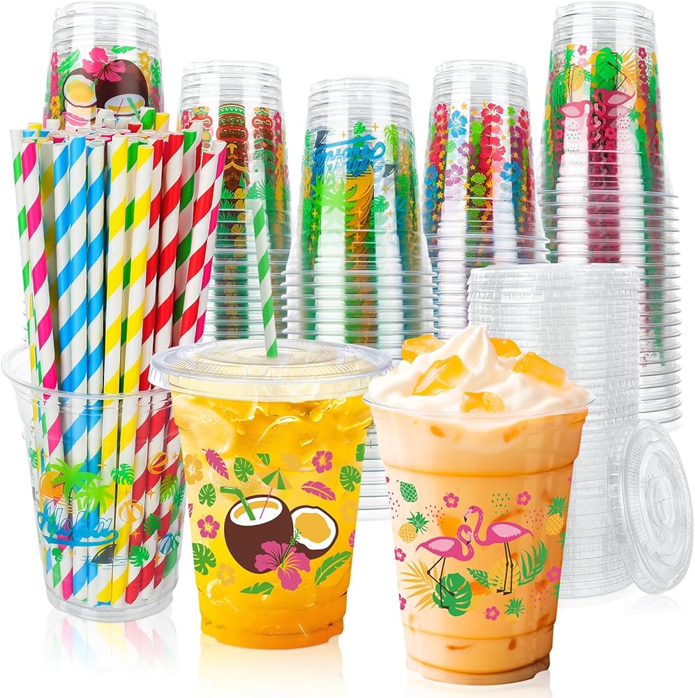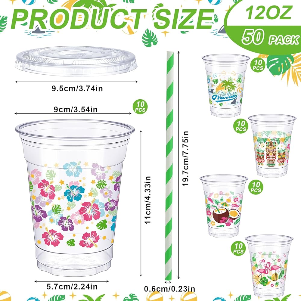 تشمل الحزمة: ستتلقى 50 قطعة من كؤوس Luau التي يمكن التخلص منها مع 5 تصاميم مختلفة ، مع 50pcs مطابقة الأغطية والقش ، يمكن أن تلبي كمية كافية احتياجاتك الاستخدام المختلفة ، مثل الاستخدام اليومي ، والسفر ، والتخييم ، والنزهات ، والشواء ، والمزيد ؛ بدلة لتقديم مجموعة متنوعة من المشروبات الباردة