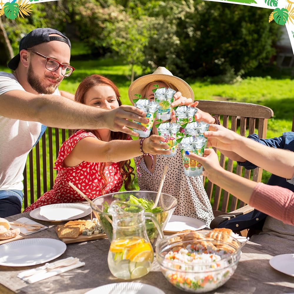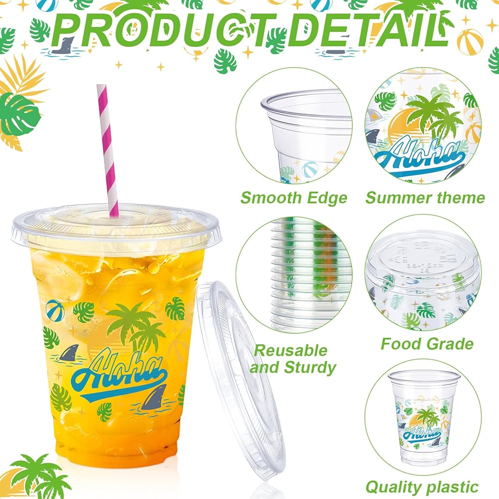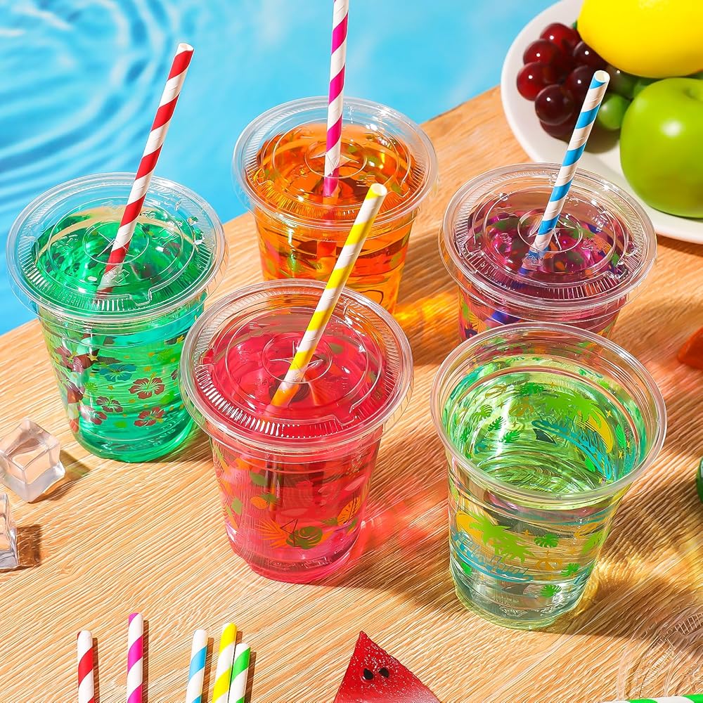 تصميم موضوع الصيف: مطبوع مع فلامنغوس الجميلة ، وأشجار النخيل ، والأناناس ، وجوز الهند ، والتيكي ، والقيثارات ، وأنماط زهور الكركديه ، هذه الأكواب البلاستيكية التي يمكن التخلص منها في هاواي لها ألوان زاهية ومؤثرات بصرية جذابة ، ولفت الانتباه وتضيف لمسة من السحر الاستوائي