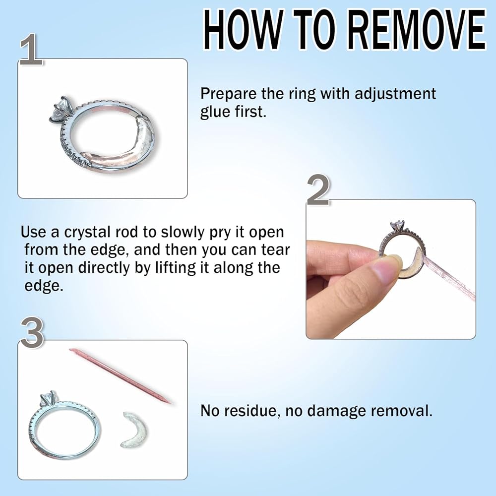 • Suitable for Rings of Any Width: The invisible ring size adjuster allows you to say goodbye to visible elastic plastic rings or clip-on ring adjusters! The moldable solid glue is completely hidden inside the ring, stays firmly in place, and adjusts the size for a perfect fit. It works for any ring, whether it's wide, narrow, or has a unique shape