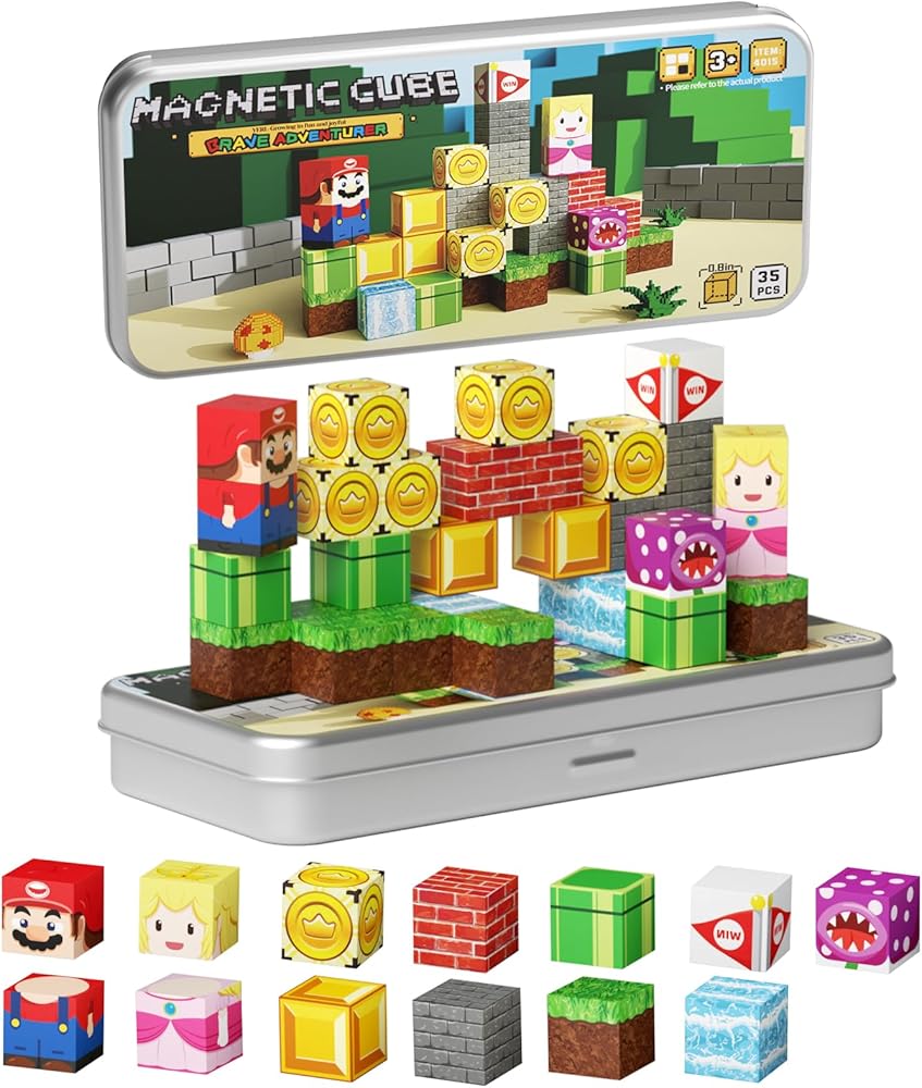 【صندوق القصدير المغناطيسي المزدوج وألعاب بناء آمنة】 يتميز صندوق تخزين الصلب المطلي بالقصدير المتين هذا على سطح مغناطيسي يتضاعف كقاعدة بناء-يمكن للأطفال بناء رأسيًا على المربع! تتضمن المجموعة 35 كوكبًا مغناطيسيًا صغيرًا مع مغناطيس مغطى بالكامل (ASTM F963/EN71 معتمد). على عكس أكياس النسيج الوهمية ، يحتفظ صندوق المعادن المتين لدينا بالكتل منظمة ومحمية أثناء السفر ، في حين أن الحواف الملساء والمواد الآمنة للأطفال تضمن اللعب الخالي من القلق. مثالي للبناء على الطائرات أو في السيارات أو في المنزل