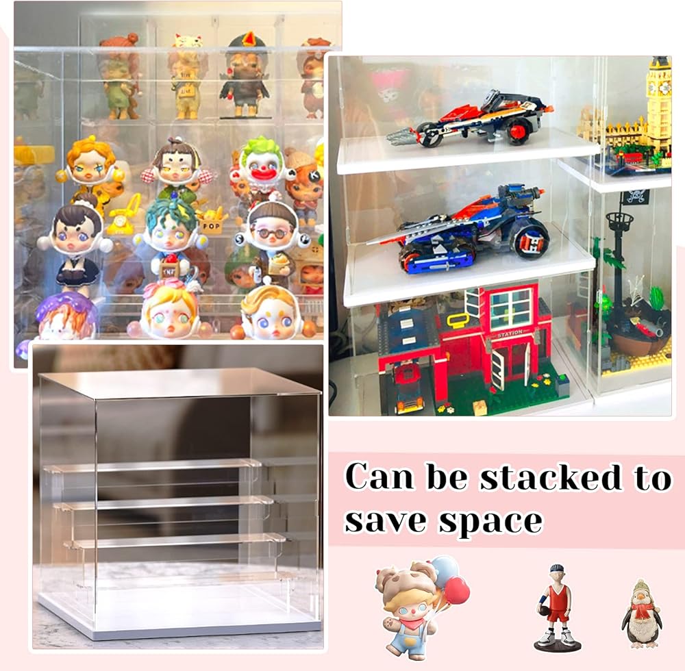 【Clear Display Boxes】 The transparent design of the storage box with a lid allows you to instantly find any stored stuff from any angle. You don't have to wipe the collection one by one every day, the display cabinet protects it from being covered by dust. Normal cleaning only needs to wipe the display cabinet with a damp cloth, and it will look like new.
