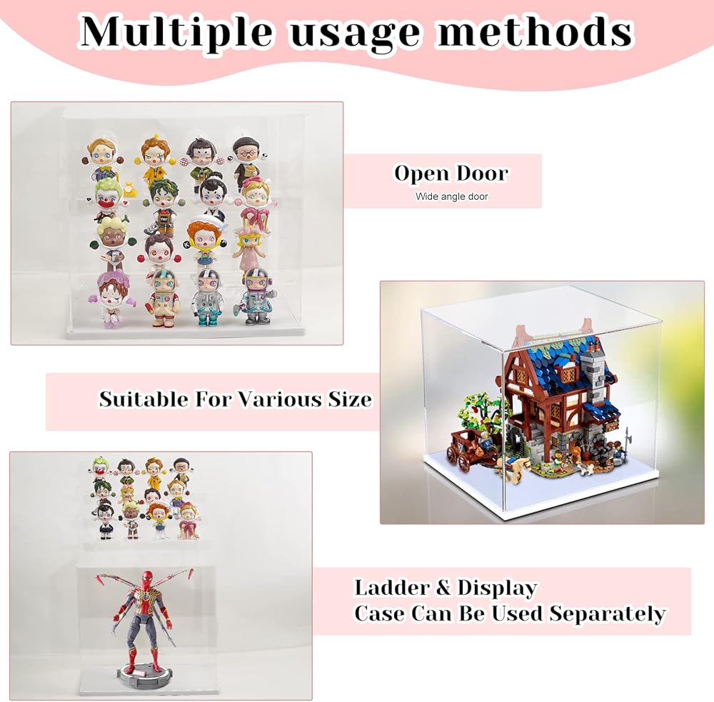 【Easy to Assemble】 These clear display stands no tools are required,follow the assembly instructions,anyone can complete the installation with just a few easy pieces.You don't have to wipe the collection one by one every day, the display cabinet protects it from being covered by dust.