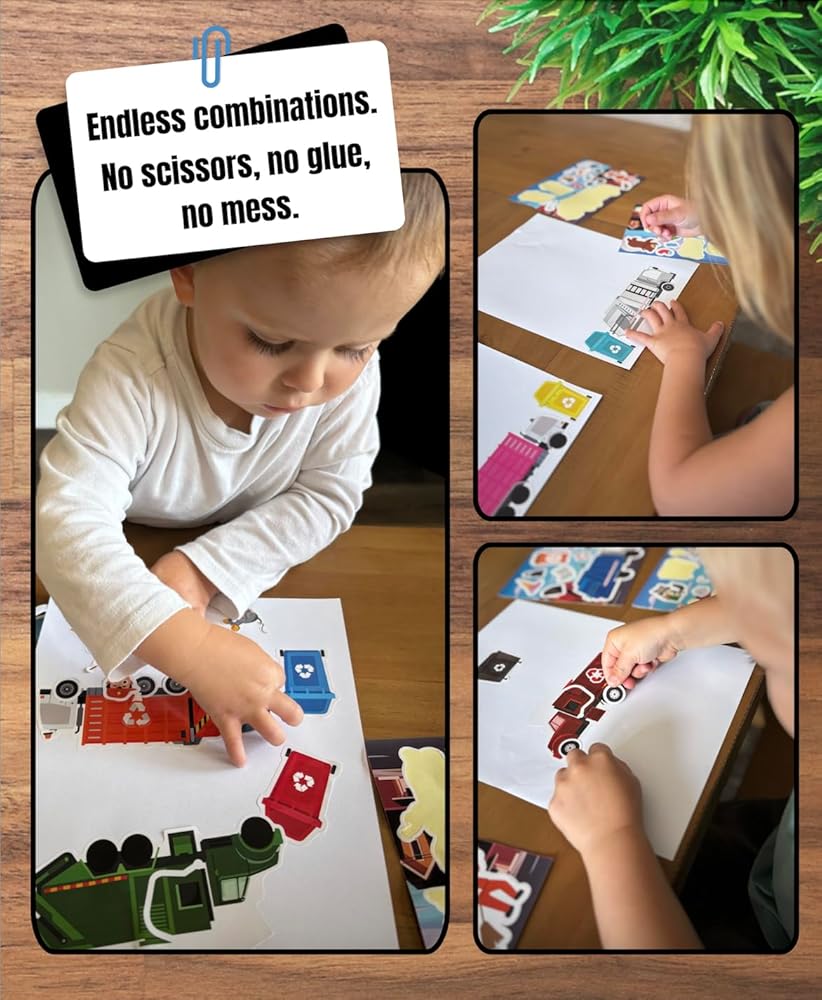 ملصقات ملصقات شاحنة القمامة ، باش القمامة ، اصنع ملصقاتك الخاصة ، مزيج وتطابق الملصقات ، مجموعة لعب الملصقات ، نشاط الفنون والحرف للأطفال ، لصالح الحفلات ، السيارات ، باش القمامة ، 24 قطعة ، 6 اختلافات