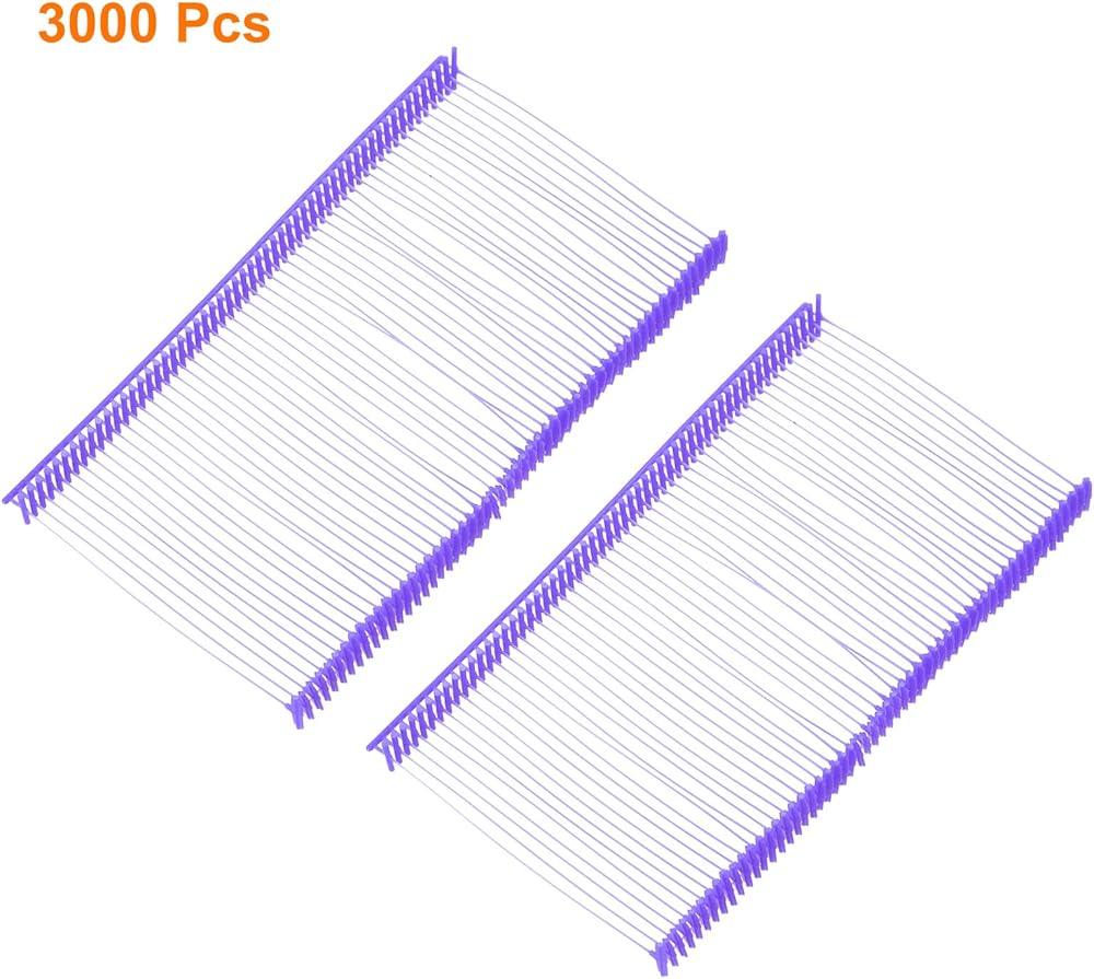 Fastener Hook Ties Tag Strings,Material: Plastic;Fixed type:Tag gun threading needle;Wire length:52mm/2.05 Inch;Width:8mm/0.31 Inch;Inner diameter:50mm/1.97 Inch;Color:Purple;Package Contents: 3000Pcs Tags Ties;