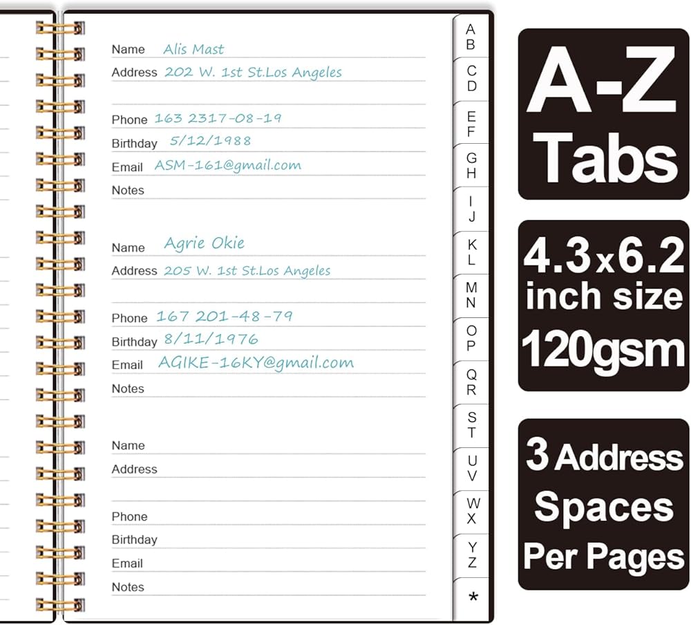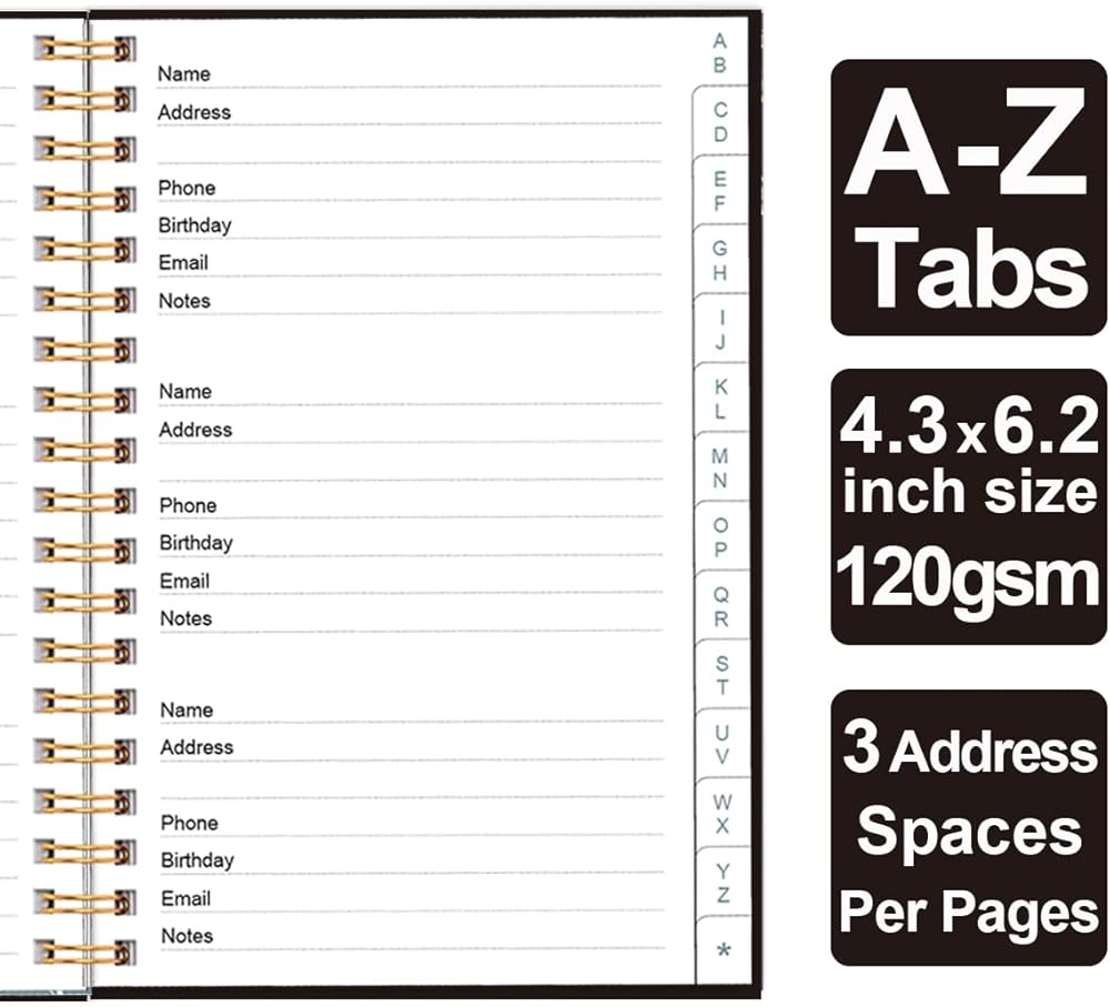 A-Z TABS & EASY TO USE - Spiral bound address organizer book with alphabetical tab you can locate need addresses quickly