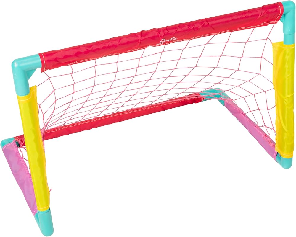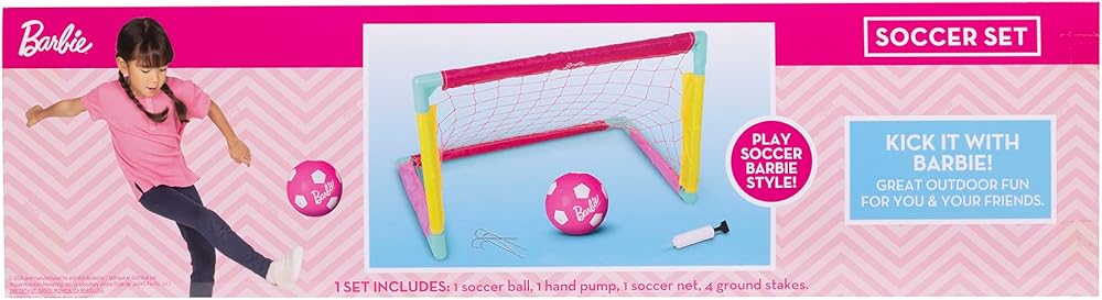 Kick up the fun with the Barbie Kids Soccer Goal Set! Designed for energetic outdoor or indoor play, this set includes a Barbie-themed soccer goal, lightweight soccer ball, hand pump and four ground stakes. Perfect for backyards, driveways, parks, or beaches, the portable design makes setup and storage a breeze. The bright Barbie graphics inspire confidence and imagination while promoting active play and teamwork. Ideal for practice or friendly games with friends, this is a must-have for sporty Barbie fans!