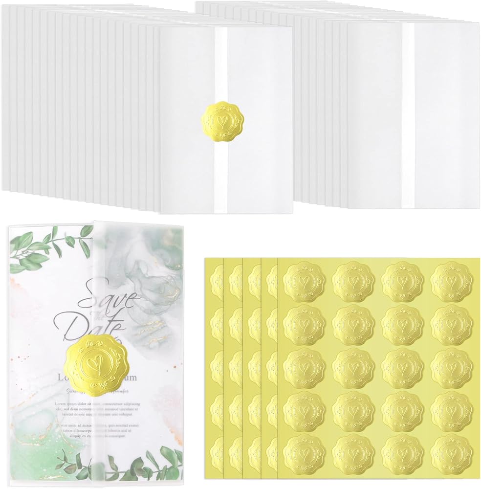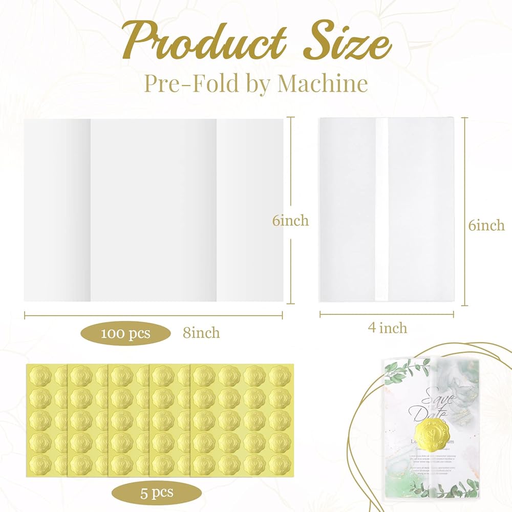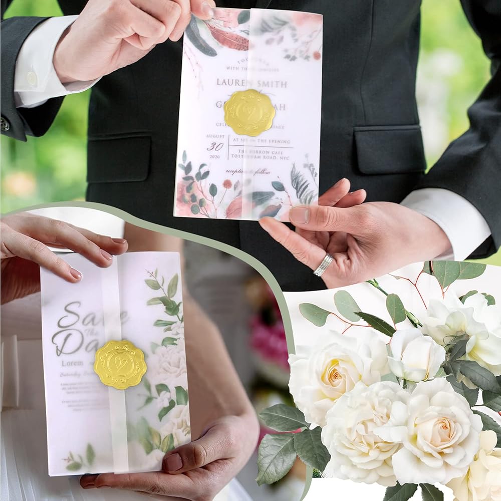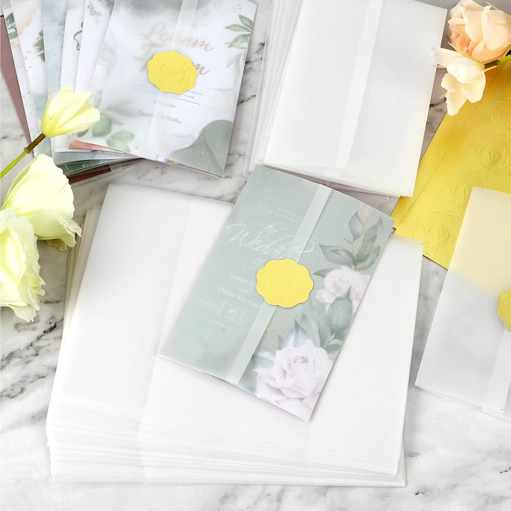 أنيق وجميل: ورق الرق الشفاف أنيق وفاخر مع ملصقات الإغلاق. كما يمكنك تزيينها بشريط لجعل الدعوات أكثر جاذبية