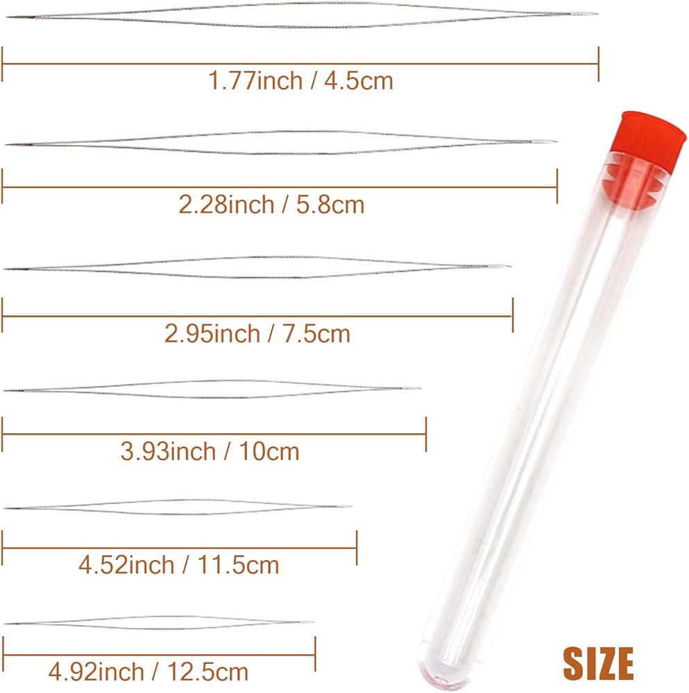 【تخزين مريح】: إبر الخرز مجهزة بزجاجة بلاستيكية للتخزين والحفاظ عليها لضمان النظافة ومنع الضياع. الحجم الخفيف والصغير يتيح تخزينه في أي جيب، أو صندوق تخزين إبرة وخيط، أو خزانة، إلخ.