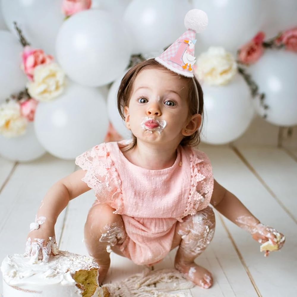 This silly goose themed party hat is designed to celebrate your little cutie's 1st birthday, and your son, daughter, nephew, niece, grandson, and other children can use it on their special occasions