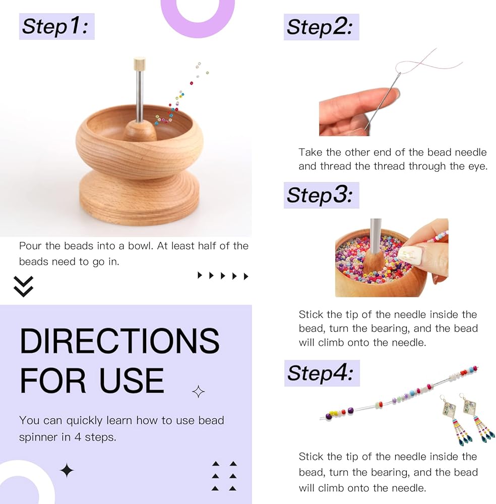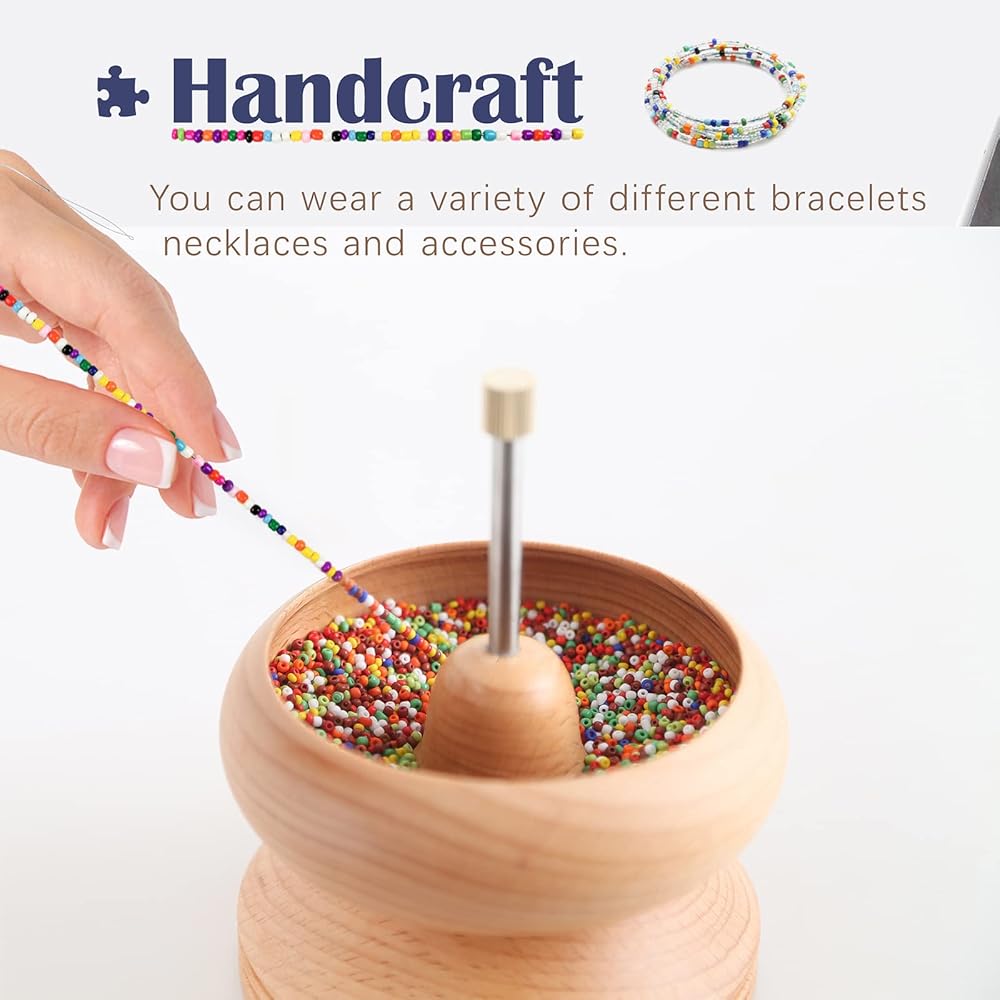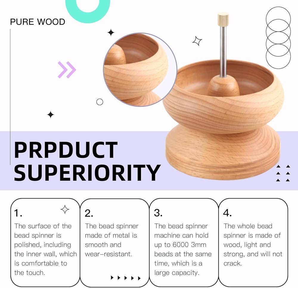 سبينر خرز خشبي: مصنوع من خشب عالي الجودة، 4.33 × 5.12 انش، الجدار الداخلي أملس بدون نتوءات، وهو أكثر ملاءمة لإنتاج الخرز؛ يوجد رأس معدني على العمود الدوار من الستانلس ستيل، وهو غير قابل للانزلاق ومتين وسهل الاستخدام؛ سوف يتحرك.